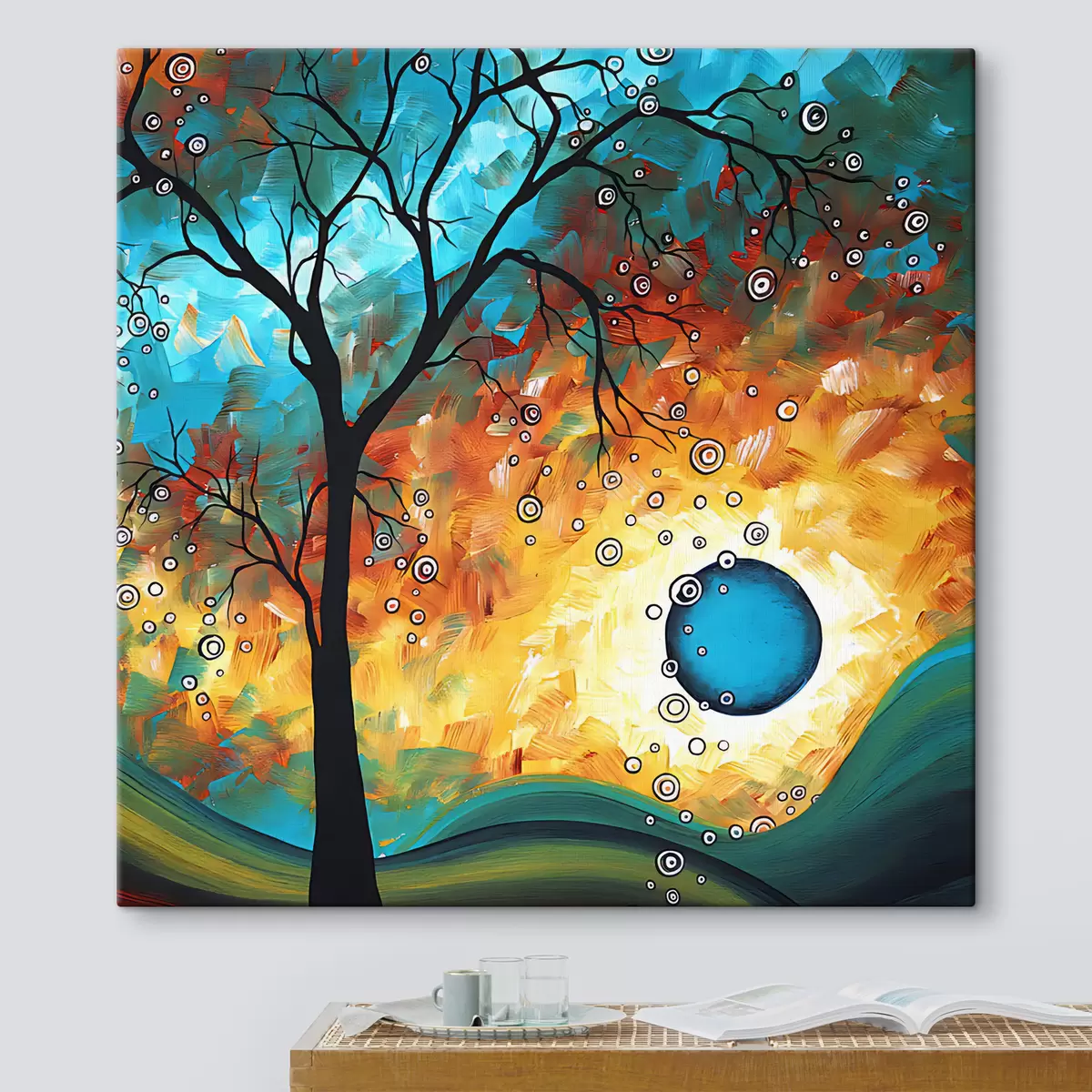 Het schilderij kan direct na ontvangst worden opgehangen. Het schilderij wordt opgespannen op een 2 cm breed houten spieraam.