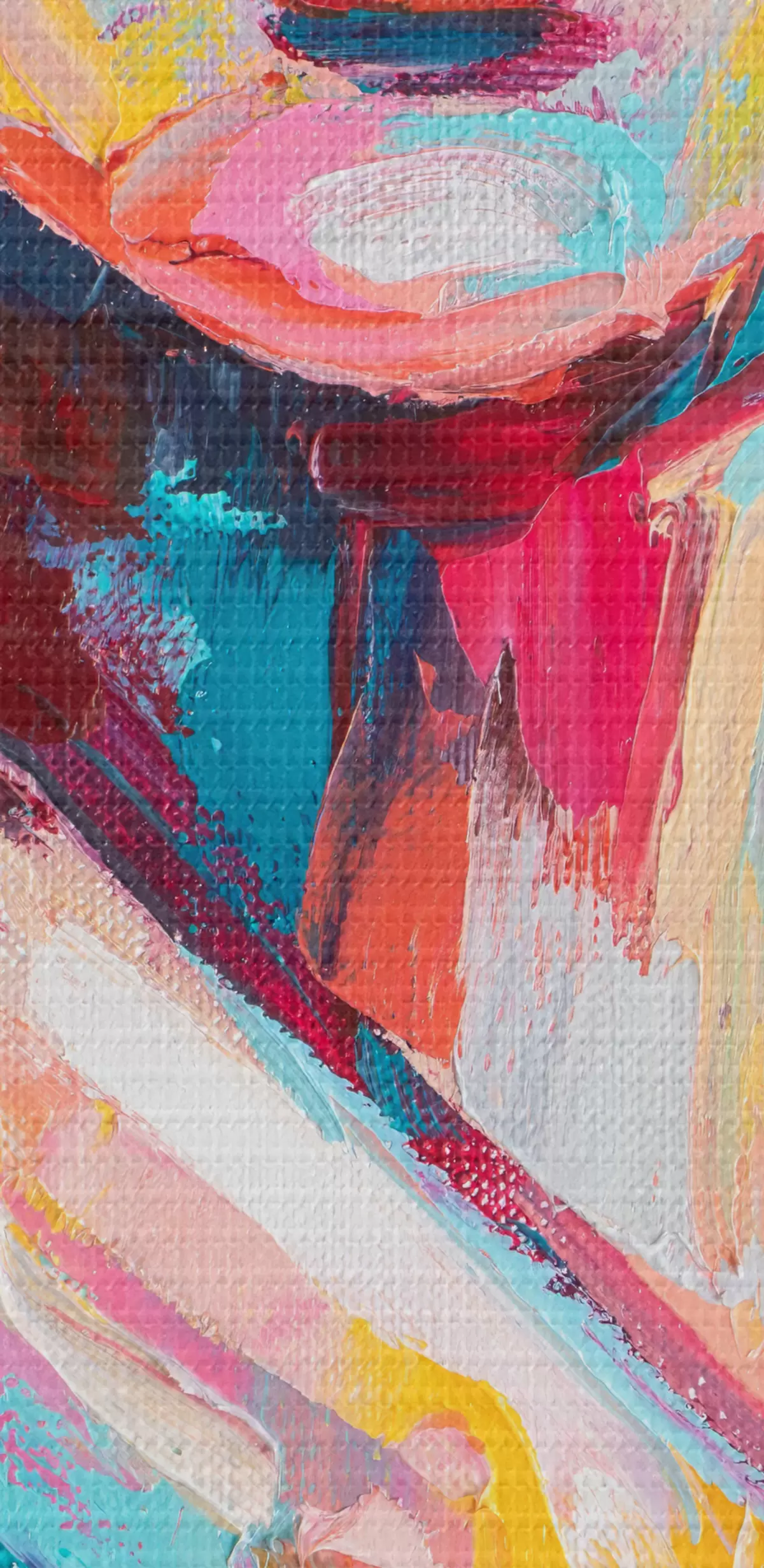 Het schilderij kan direct na ontvangst worden opgehangen. Het schilderij wordt opgespannen op een 2 cm breed houten spieraam.