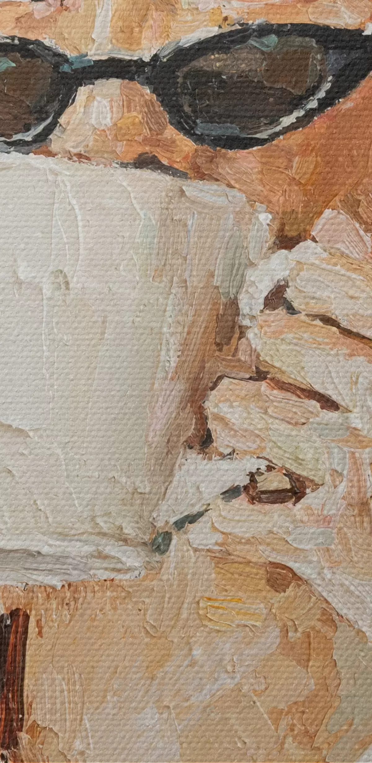 Het schilderij kan voorzichtig worden schoongeveegd met een droge zachte doek of spons; het wordt niet aanbevolen om natte producten te gebruiken. Het gebruik van een vochtige spons is alleen toegestaan als het schilderij gevernist is.