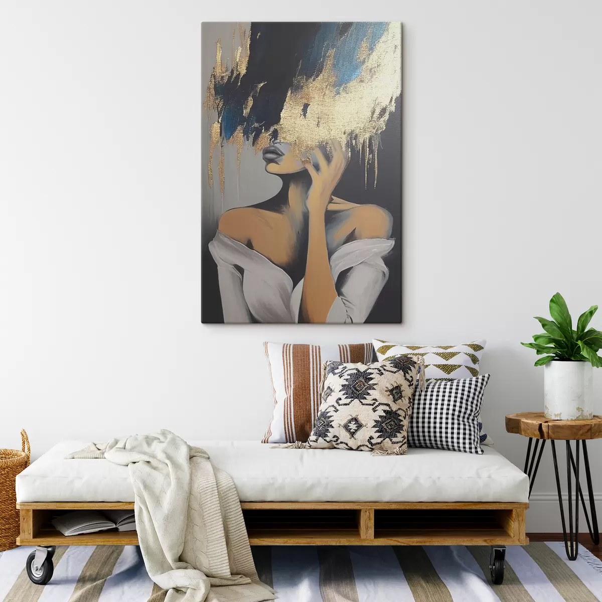 Schilderij Jonge vrouw met zwarte verf op haar gezicht Art. s34863