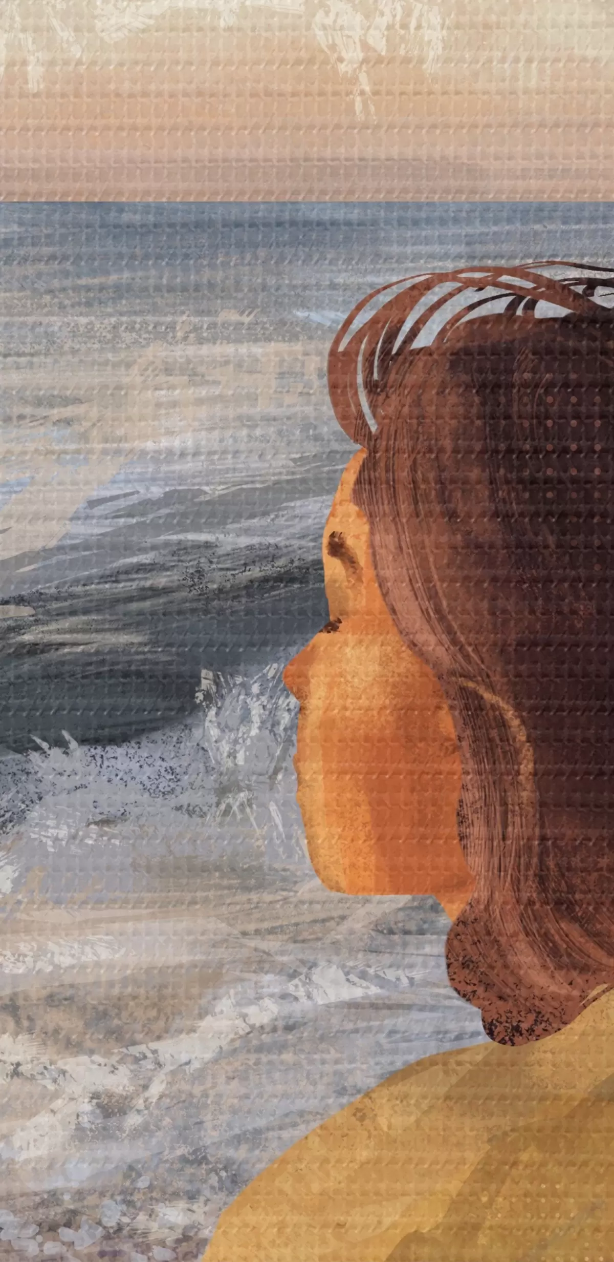 Schilderij Vrouw aan zee die de golven overweegt Art. s35317