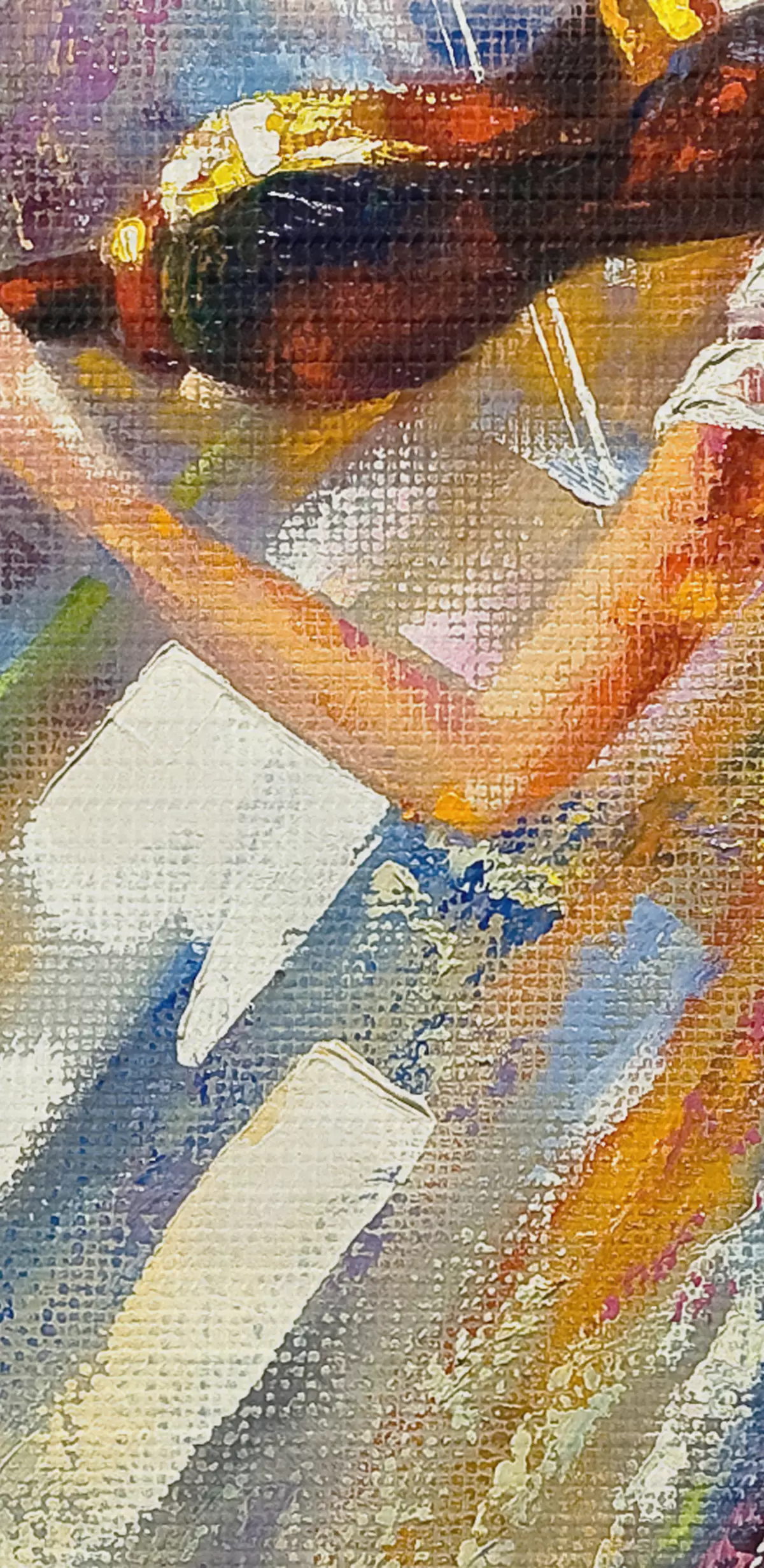 Vernis zorgt voor een extra beschermlaag op het canvas. Het schilderij zal beter bestand zijn tegen kleine beschadigingen en om het geverniste schilderij op te frissen, kun je het afnemen met een zachte, licht vochtige doek.