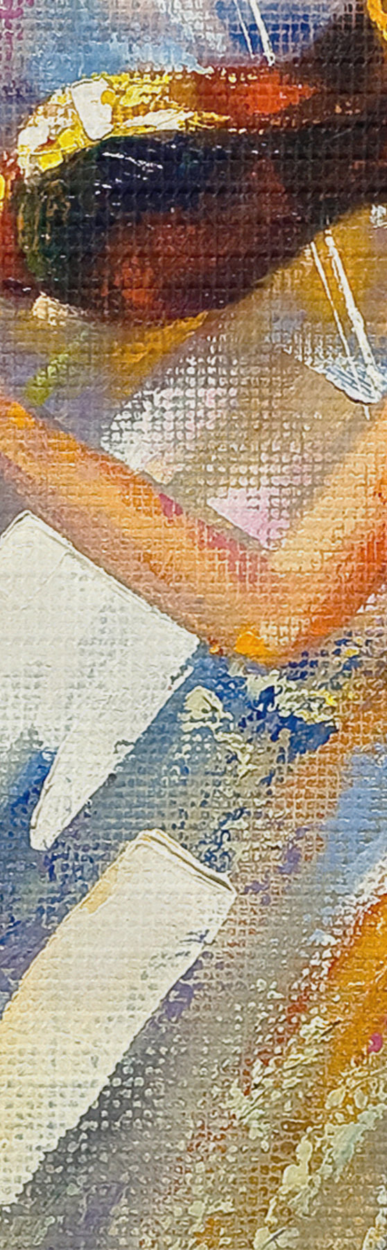 Het schilderij kan direct na ontvangst worden opgehangen. Het schilderij wordt opgespannen op een 2 cm breed houten spieraam.