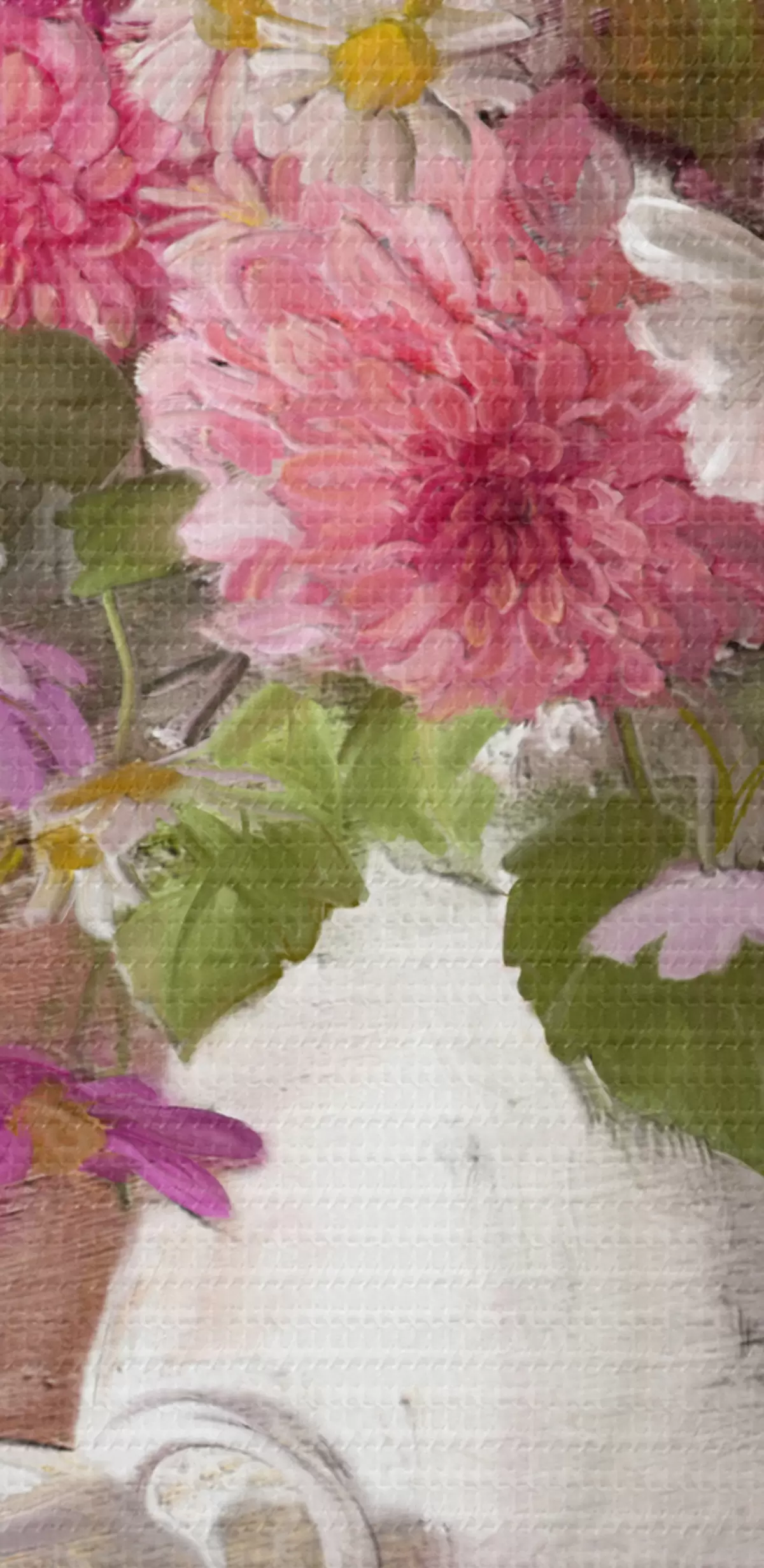 Er zijn drie soorten materiaal te bestellen: Economic Canvas - een dicht en duurzaam materiaal voor digitaal printen, identiek aan schildersdoek, waterdicht oppervlak, realistische weergave van details, materiaal met gemiddelde korrel. Premium Canvas - de textuur lijkt op die van schildersdoek (verweven kleine draden). Zachte, gedetailleerde reproductie van de afbeelding op een mat oppervlak. Eco-Premium - hoogwaardige 100% katoenen stof. Dankzij de natuurlijke katoenvezels is het materiaal duurzaam en slijtvast. Uitstekende kleurweergave en detail.