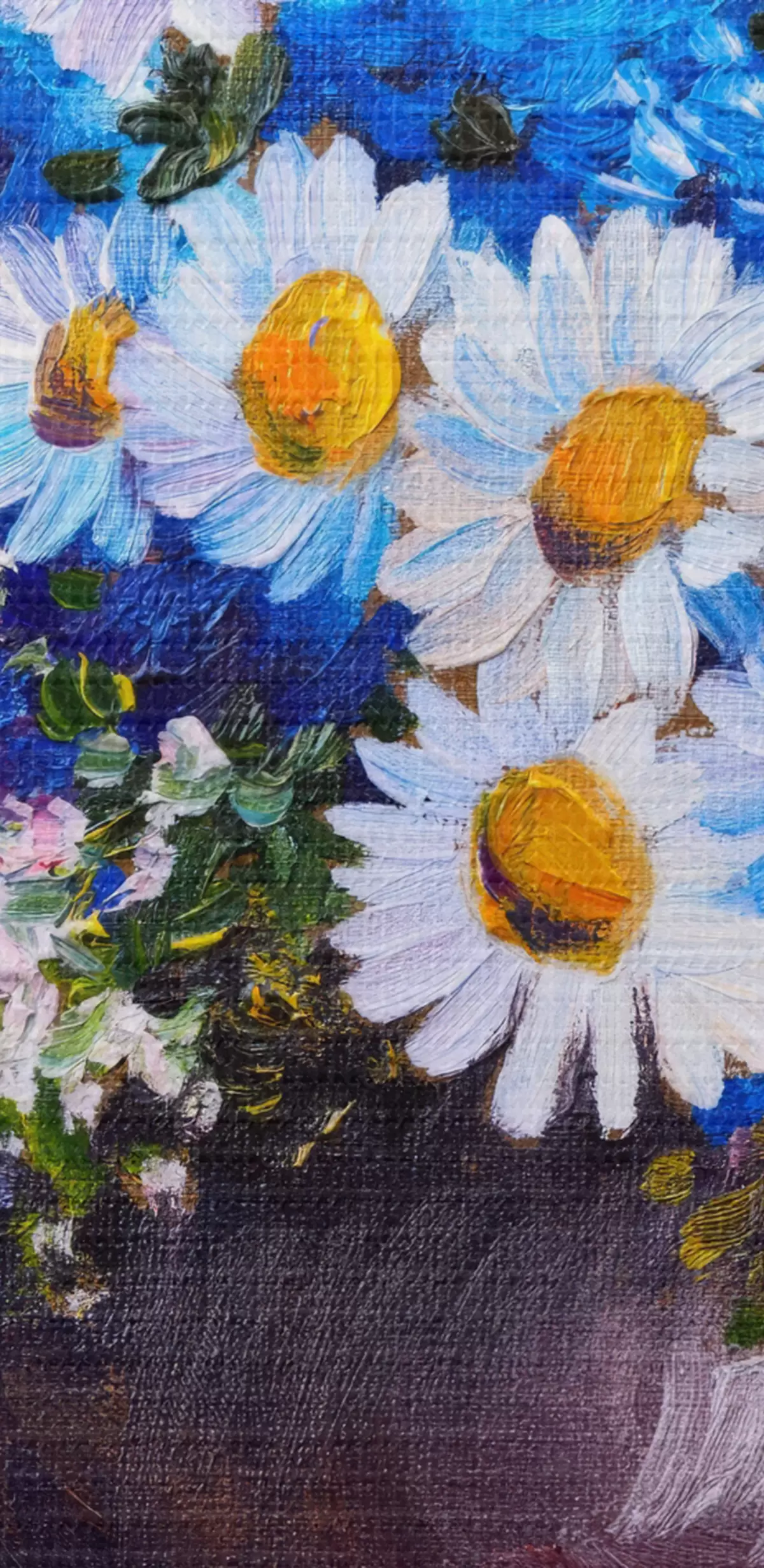 Het schilderij kan direct na ontvangst worden opgehangen. Het schilderij wordt opgespannen op een 2 cm breed houten spieraam.