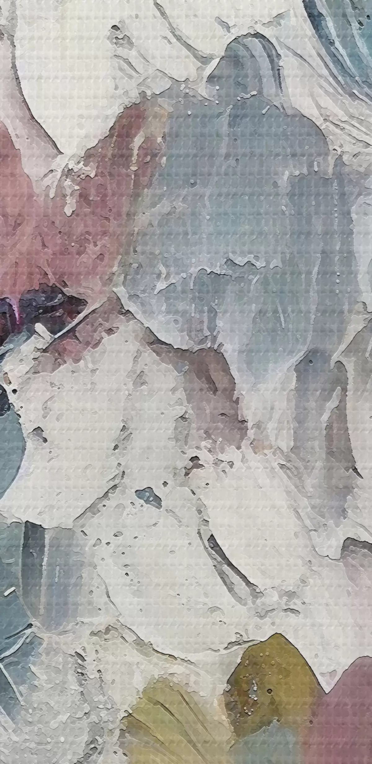 Het schilderij kan direct na ontvangst worden opgehangen. Het schilderij wordt opgespannen op een 2 cm breed houten spieraam.