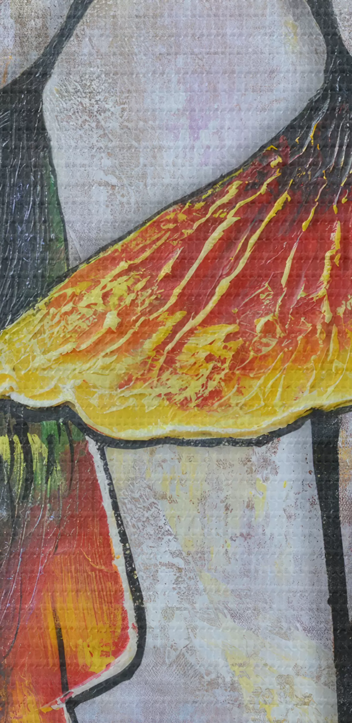 Het schilderij kan direct na ontvangst worden opgehangen. Het schilderij wordt opgespannen op een 2 cm breed houten spieraam.