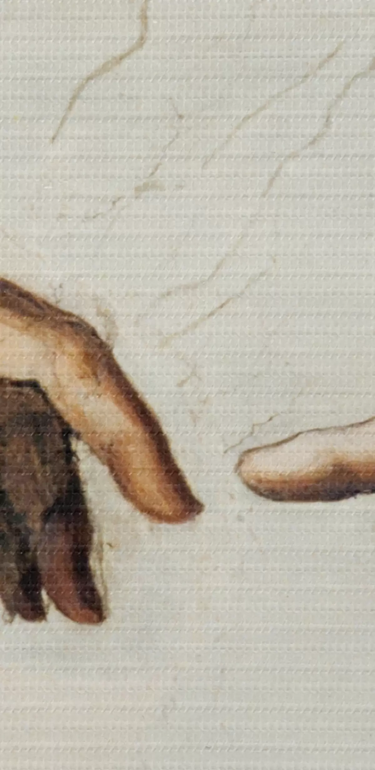 Om het doek op te spannen op spielatten zonder de afbeelding te beschadigen, gebruiken we gespiegeld beeld.
