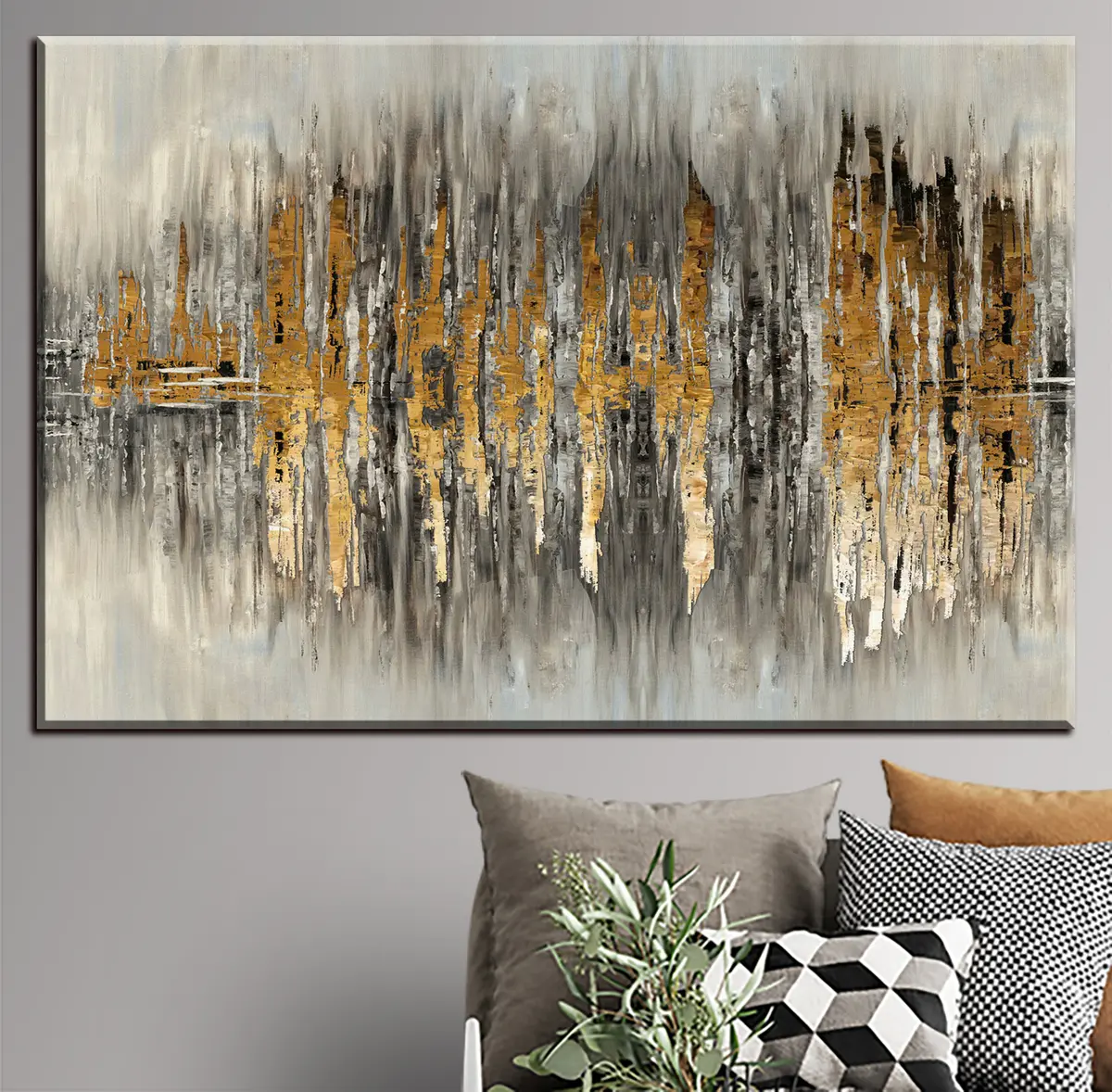Het schilderij kan direct na ontvangst worden opgehangen. Het schilderij wordt opgespannen op een 2 cm breed houten spieraam.