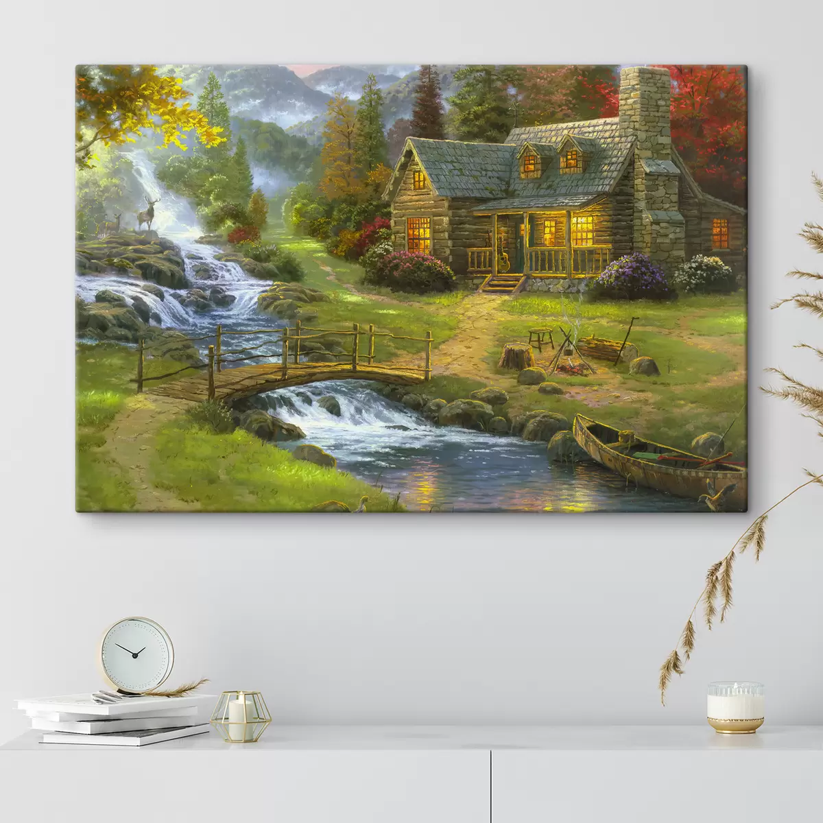 Je kunt het schilderij ophangen aan schroeven. Hiervoor leveren we bevestigingen bij onze foto's, zodat je de foto gemakkelijk kunt ophangen.