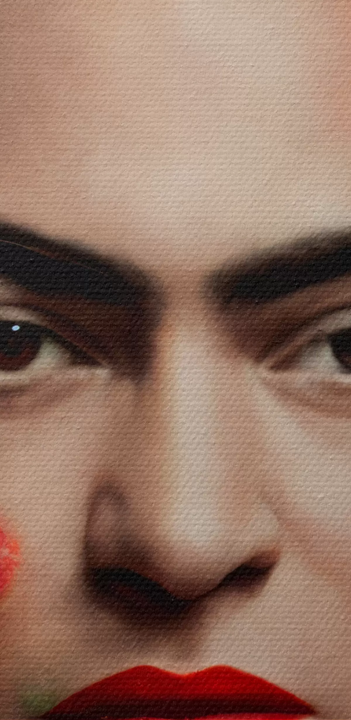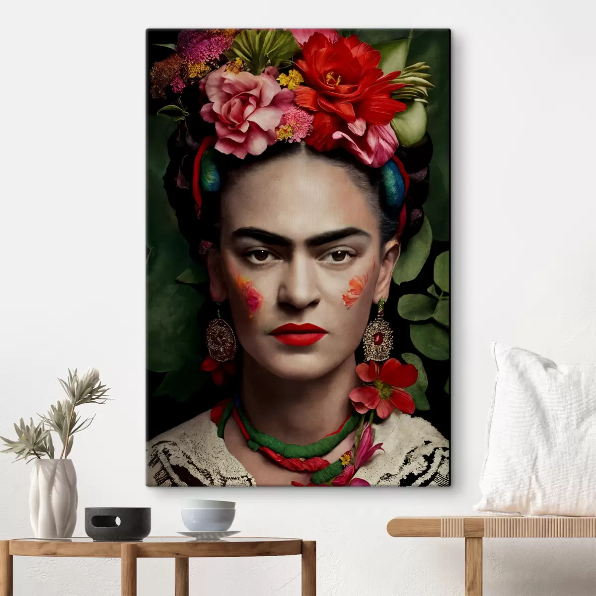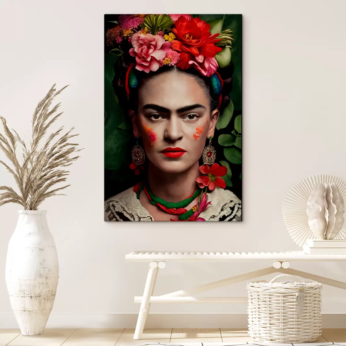 Schilderij Frida Kahlo met bloemen op groene achtergrond Art. s32861
