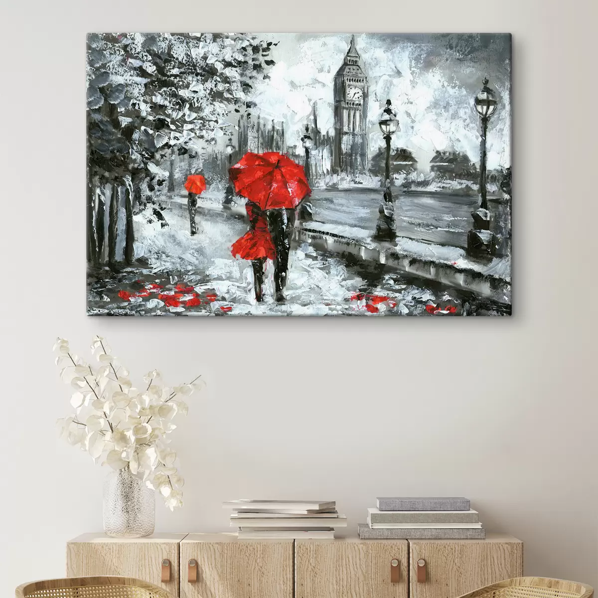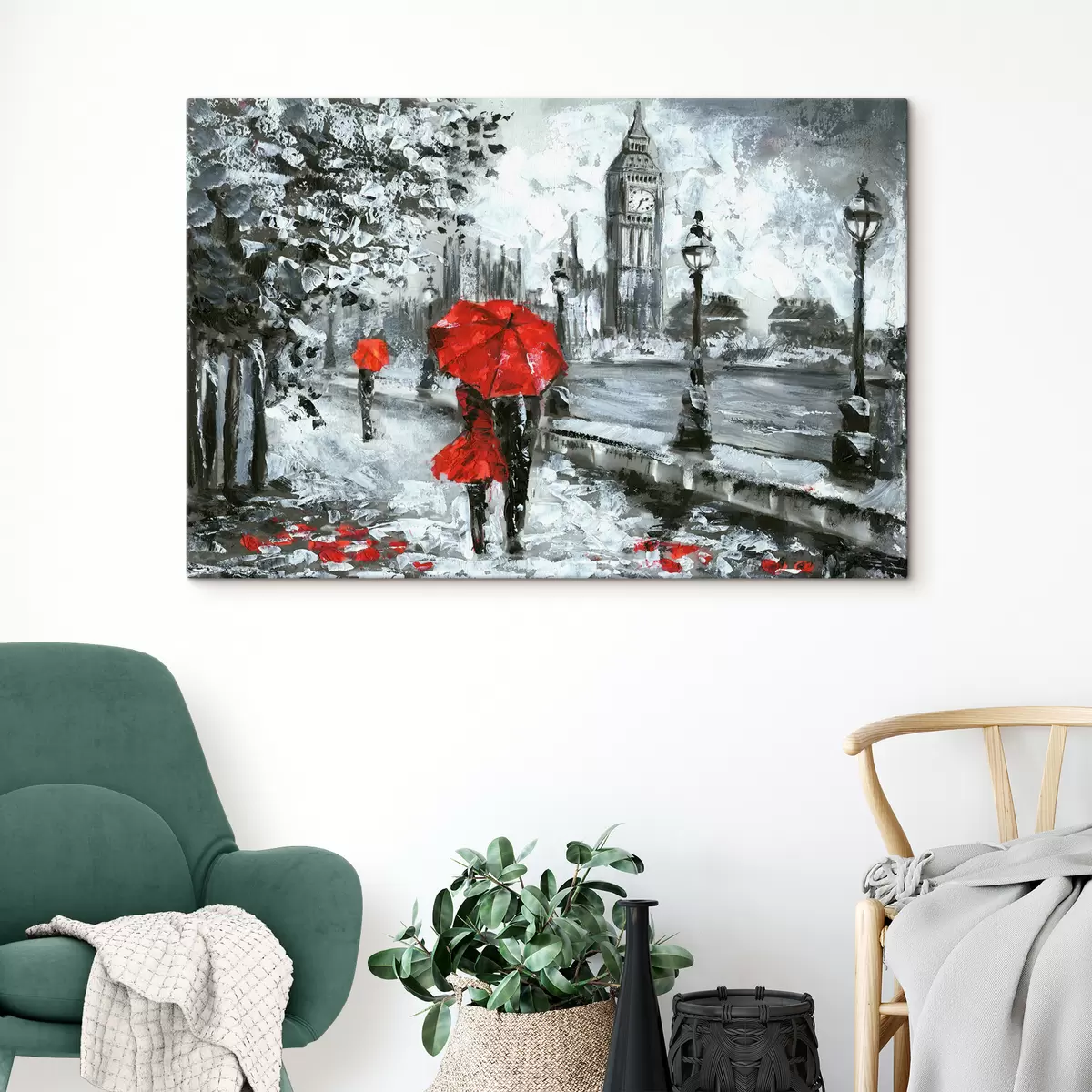 Schilderijen Olieverfschilderij, straatbeeld van Londen in zwart-wit s34614