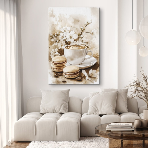 Schilderijen Witte bloemen met gele details, bloemblaadjes met subtiele schaduwen, lichte achtergrond met subtiel marmereffect