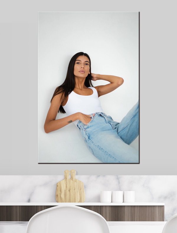 Schilderijen Een portret van een vrouw met expressieve ogen in een gestileerde techniek