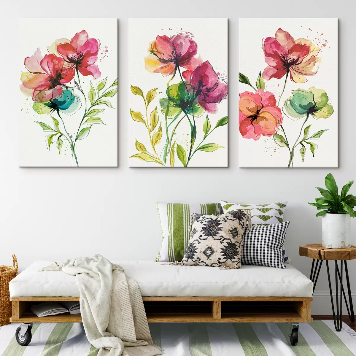 Schilderij Zachte aquarelbloemen met verfspatten Art. m00340