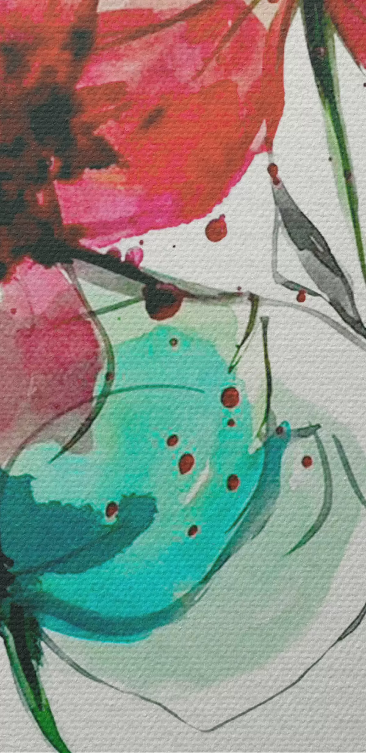 Schilderij Zachte aquarelbloemen met verfspatten Art. m00340