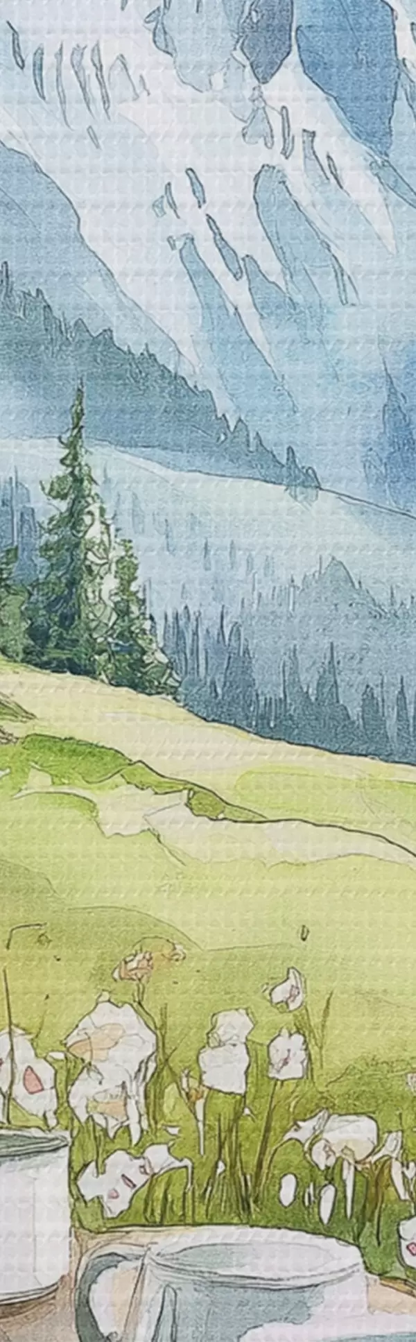Schilderij De Alpen, prachtig berglandschap, esthetisch ontbijt, houten huizen Art. m00403