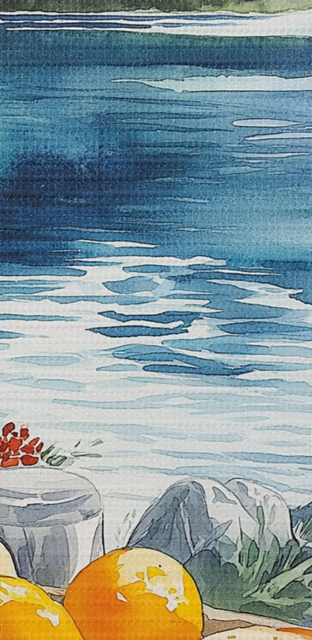 Schilderij Ontbijt in de natuur, reizen, buitenleven, aquarelstijl, Noorwegen Art. m00404