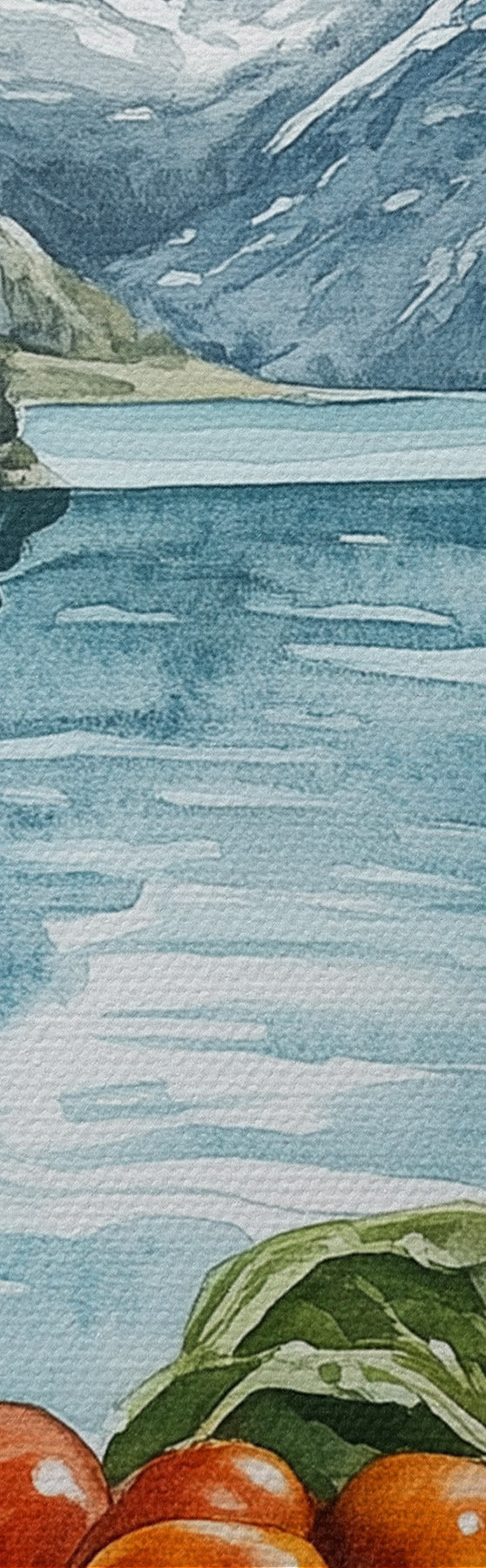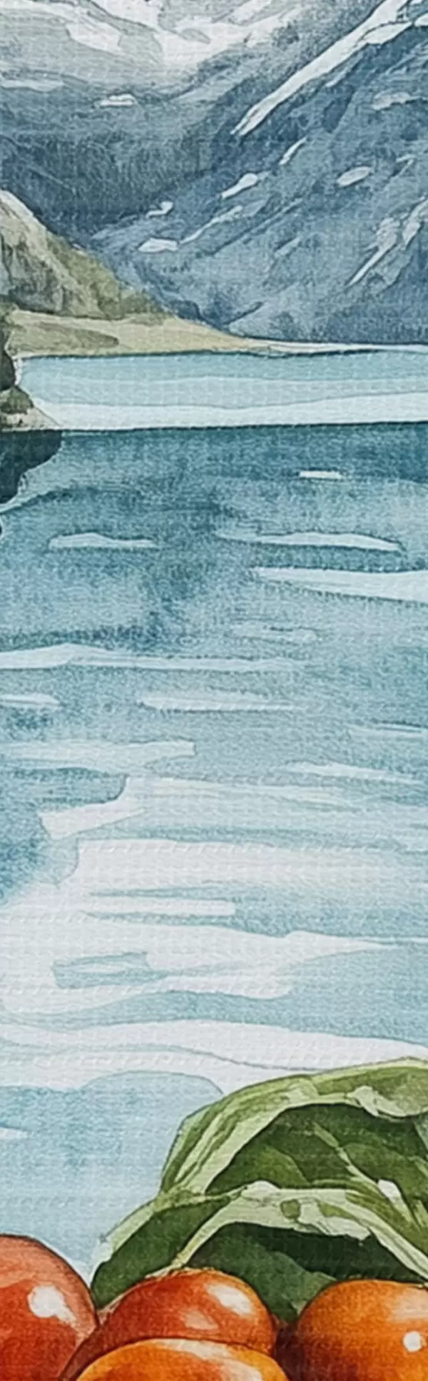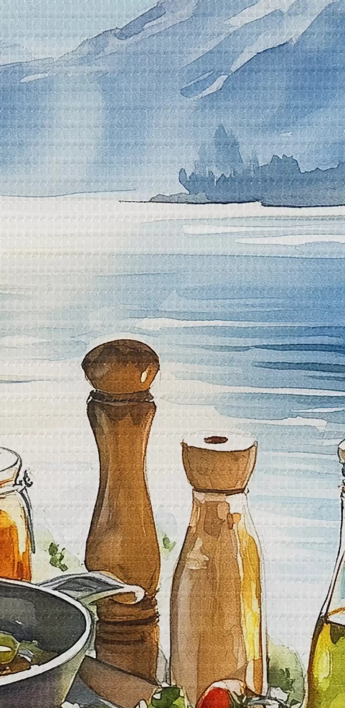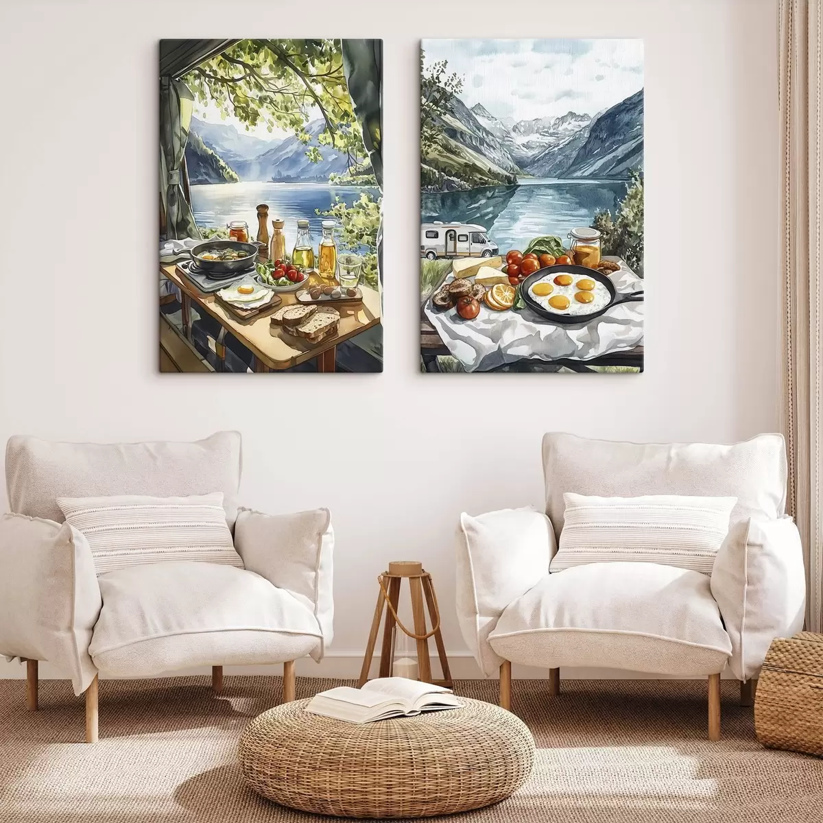 Schilderij Camping, esthetisch ontbijt bij het meer, aquarelstijl Art. m00405