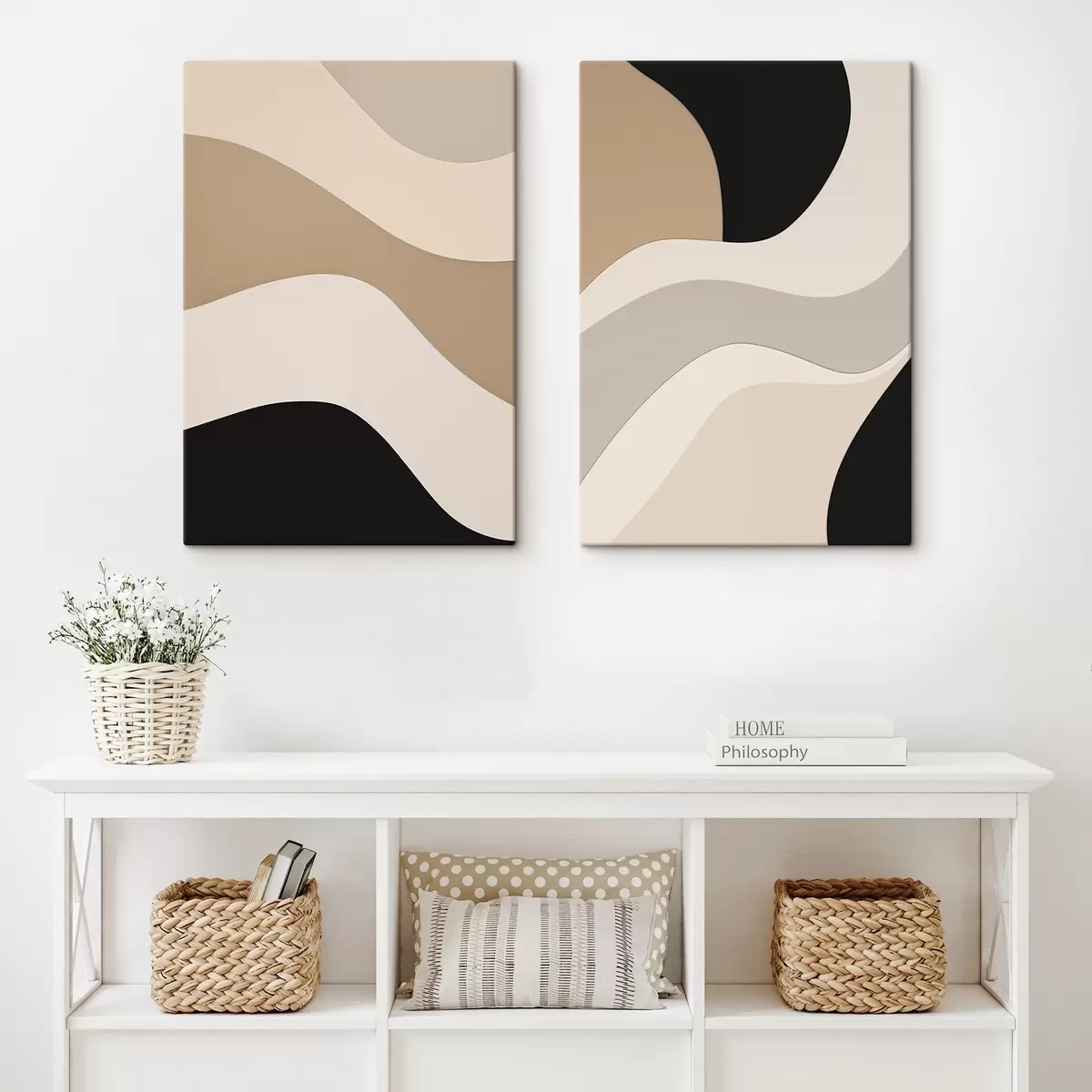Schilderijen Abstracte golven in beige en zwarte tinten m00460