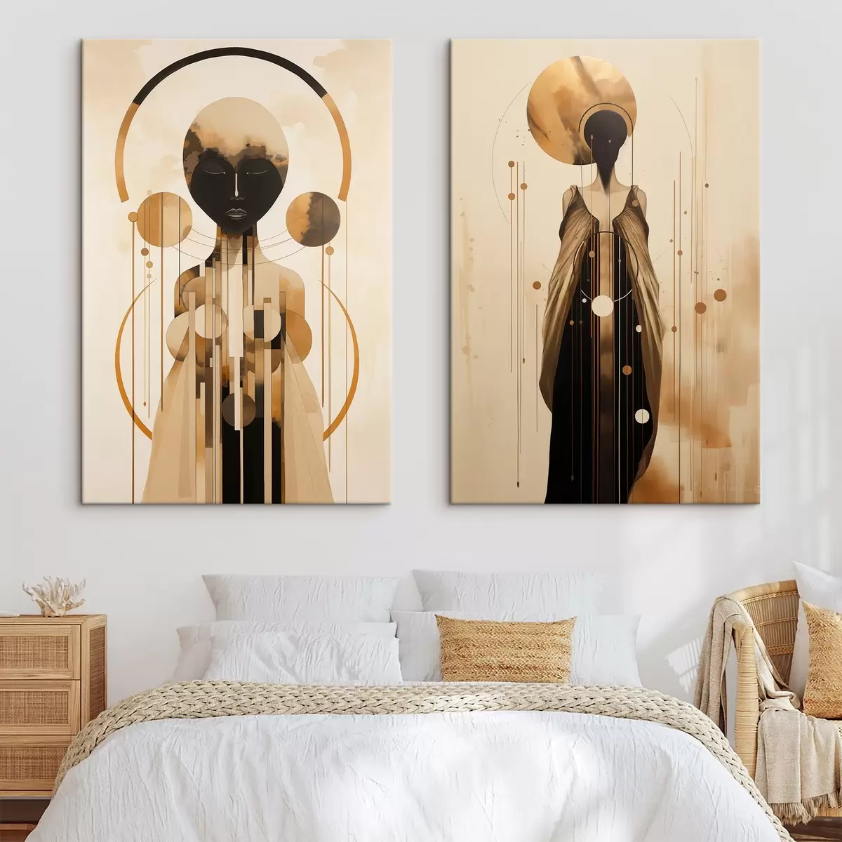 Schilderij Figuren in moderne abstracte stijl met cirkels Art. m00464