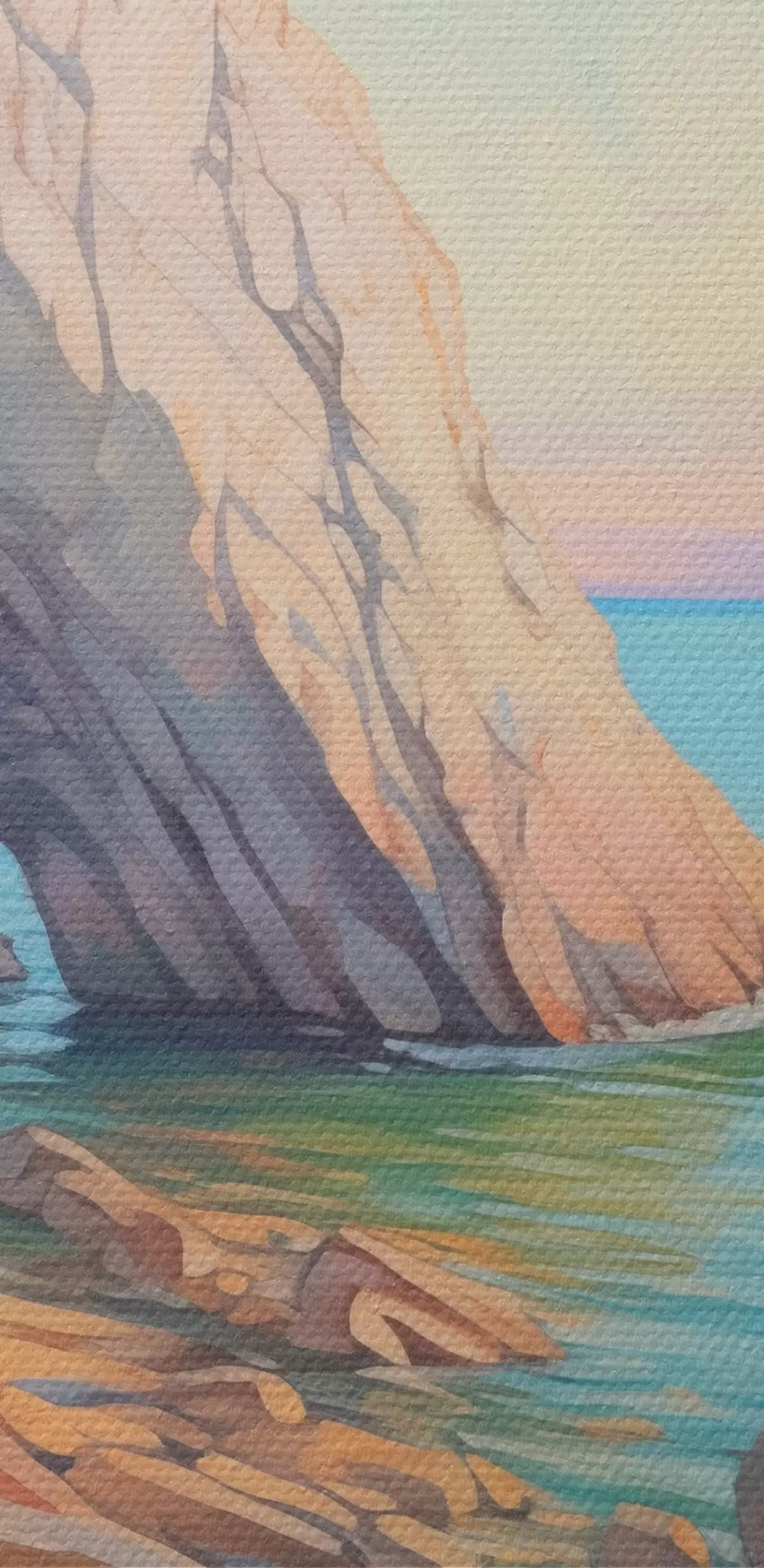 Schilderij Golf op een rotskust en lucht met wolken Art. m00487