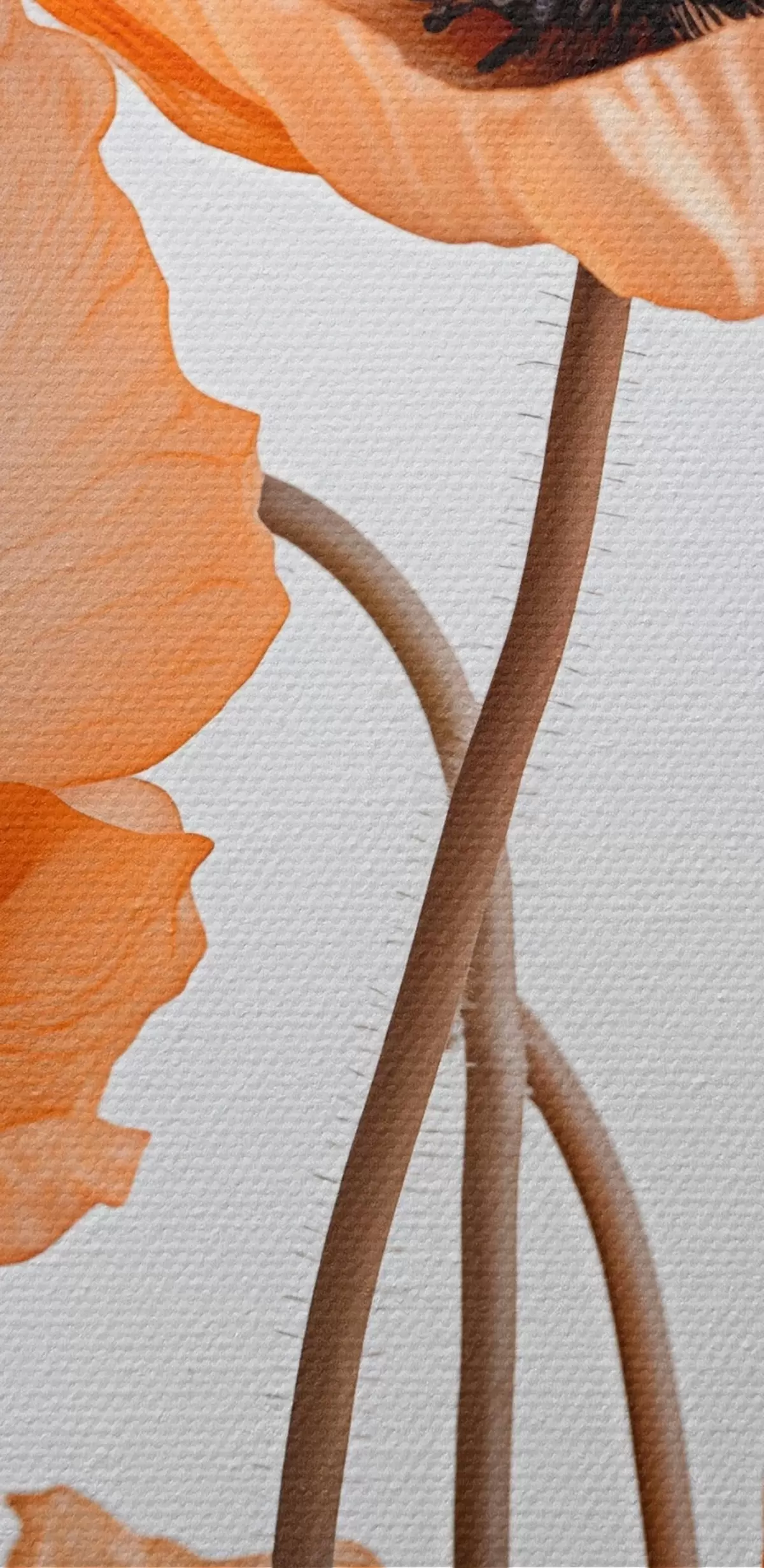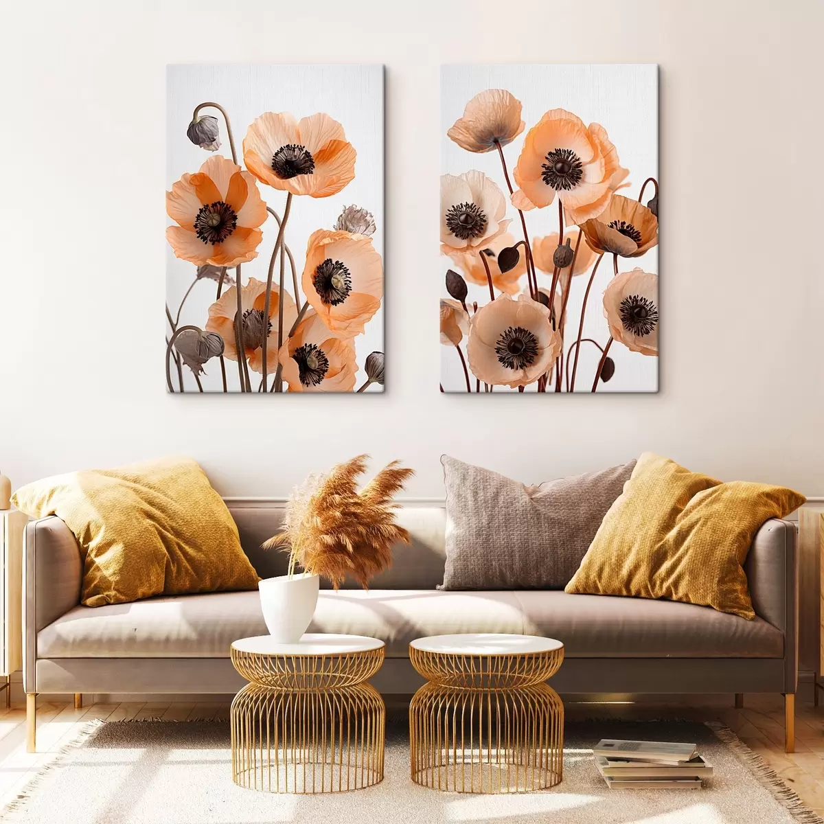 Schilderij Oranje klaprozen, gedroogde bloemen tegen een lichte achtergrond, zachte verlichting, delicate bloemblaadjes, bloemstuk Art. m00518