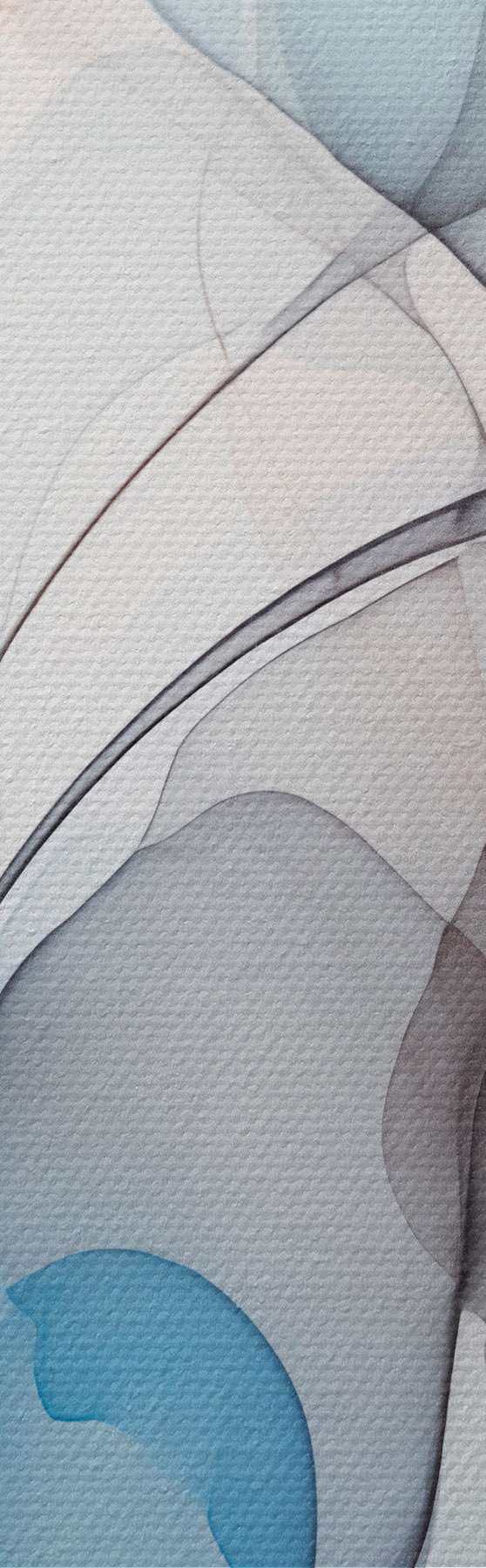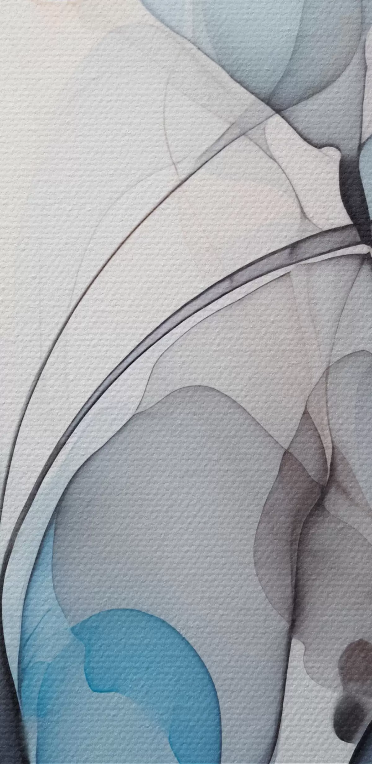 Schilderij Abstracte compositie met vloeiende lijnen en doorschijnende bloemblaadjes in blauwwitte en beige tinten, imitatie van alcoholinkt Art. m00523