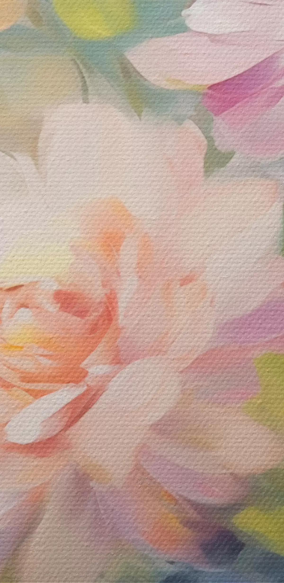 Het schilderij kan direct na ontvangst worden opgehangen. Het schilderij wordt opgespannen op een 2 cm breed houten spieraam.