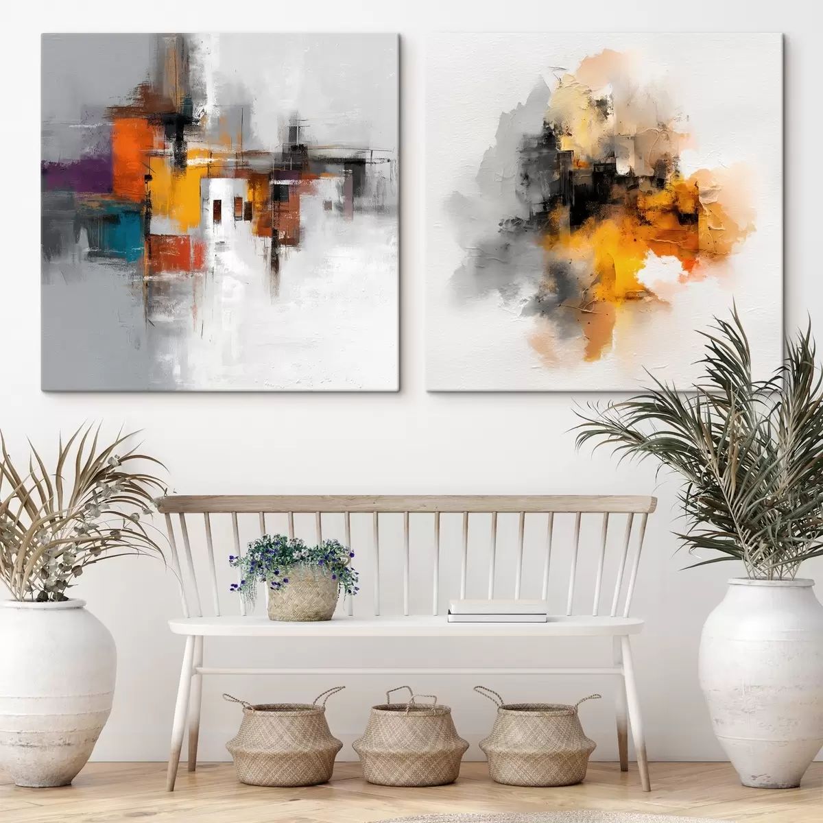 Schilderijen Expressieve stad: kunstcompositie met contrasterende kleuren m00566