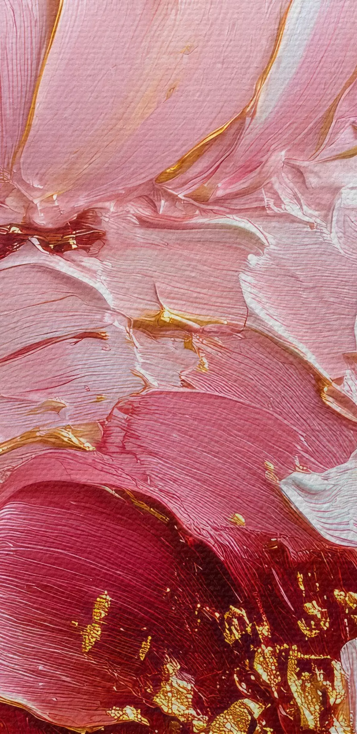 Schilderij Volumetrisch impasto schilderij met roze pioenrozen en getextureerde details Art. m00573