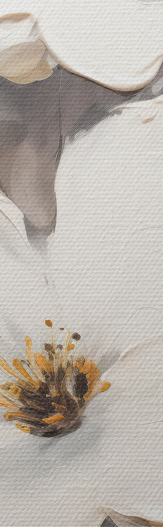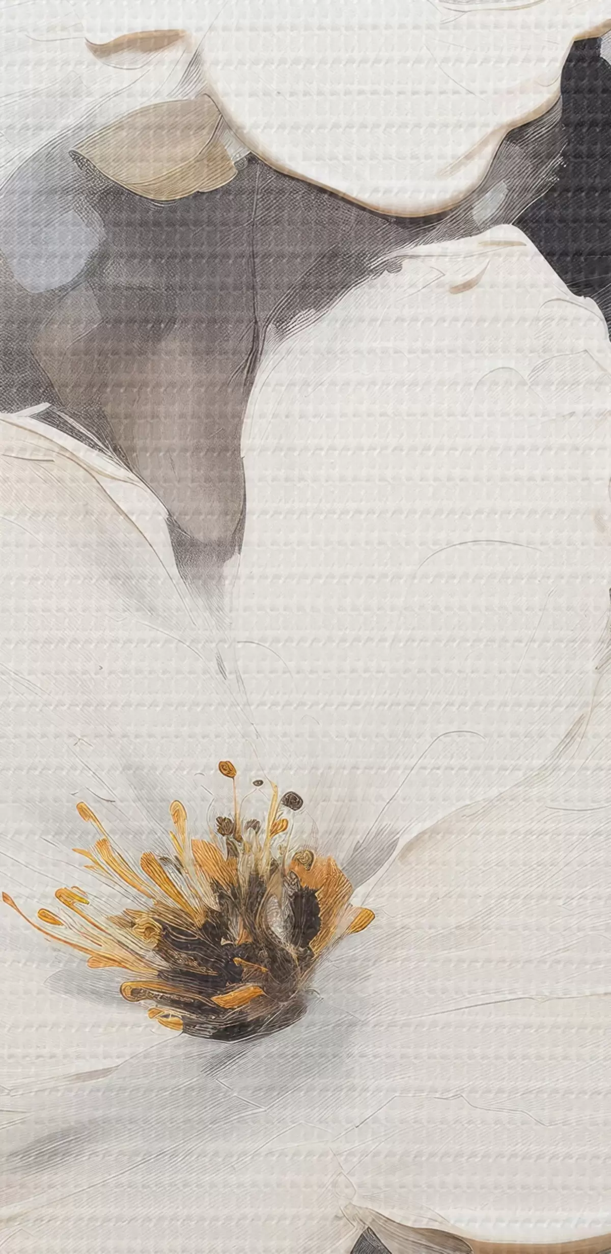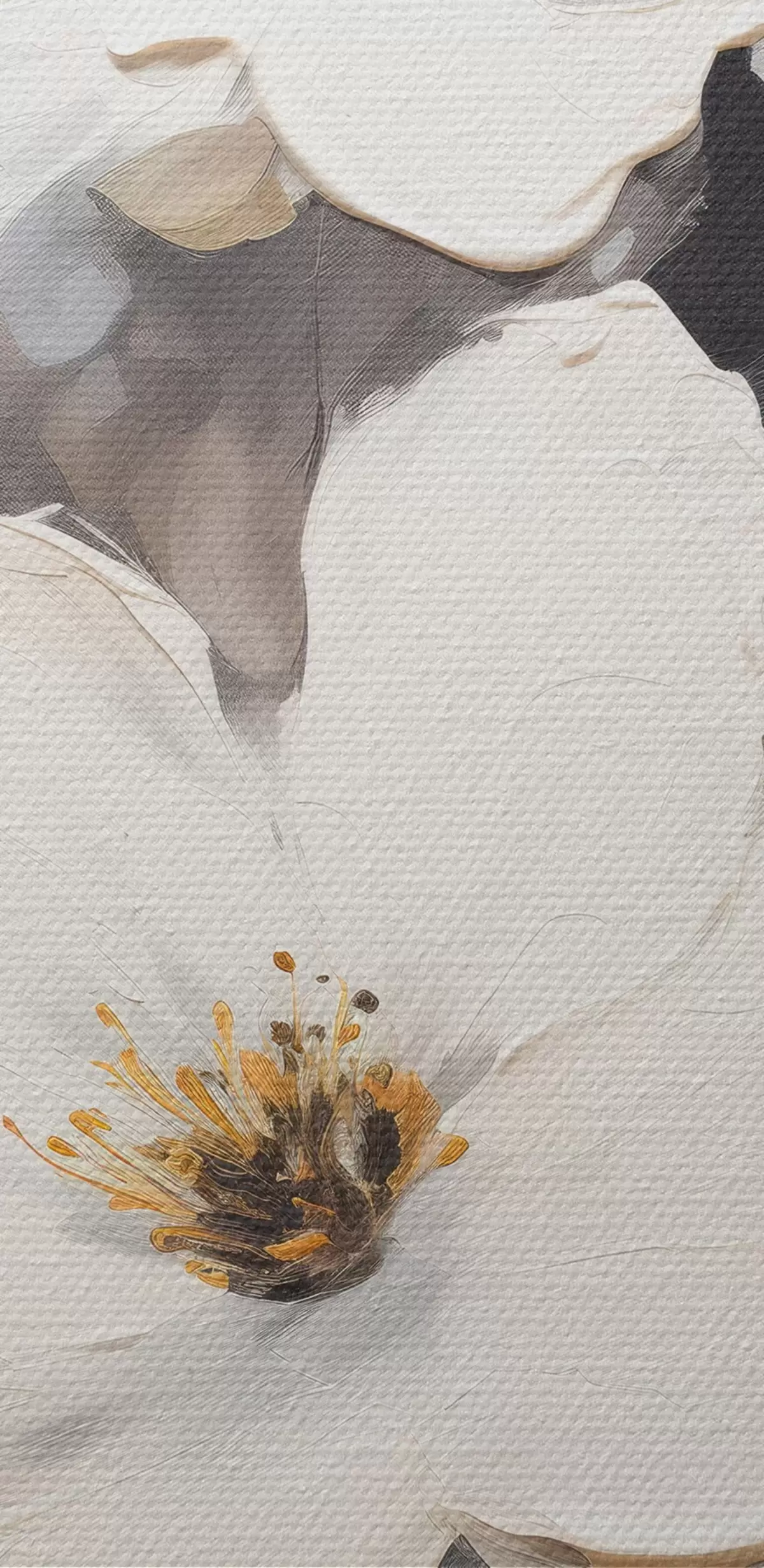 Schilderij Artistieke compositie met witte bloemen en gestructureerd oppervlak in minimalistische stijl Art. m00574