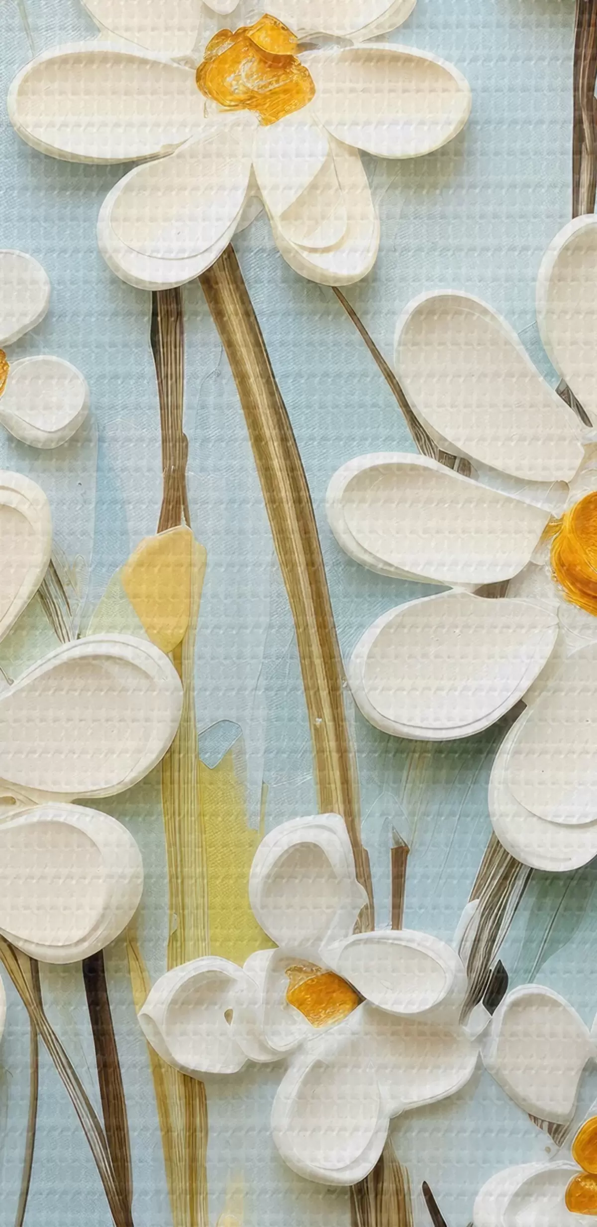Schilderij Zonnige bloemen: kunstduet met volumetrische margrieten en gele accenten Art. m00580