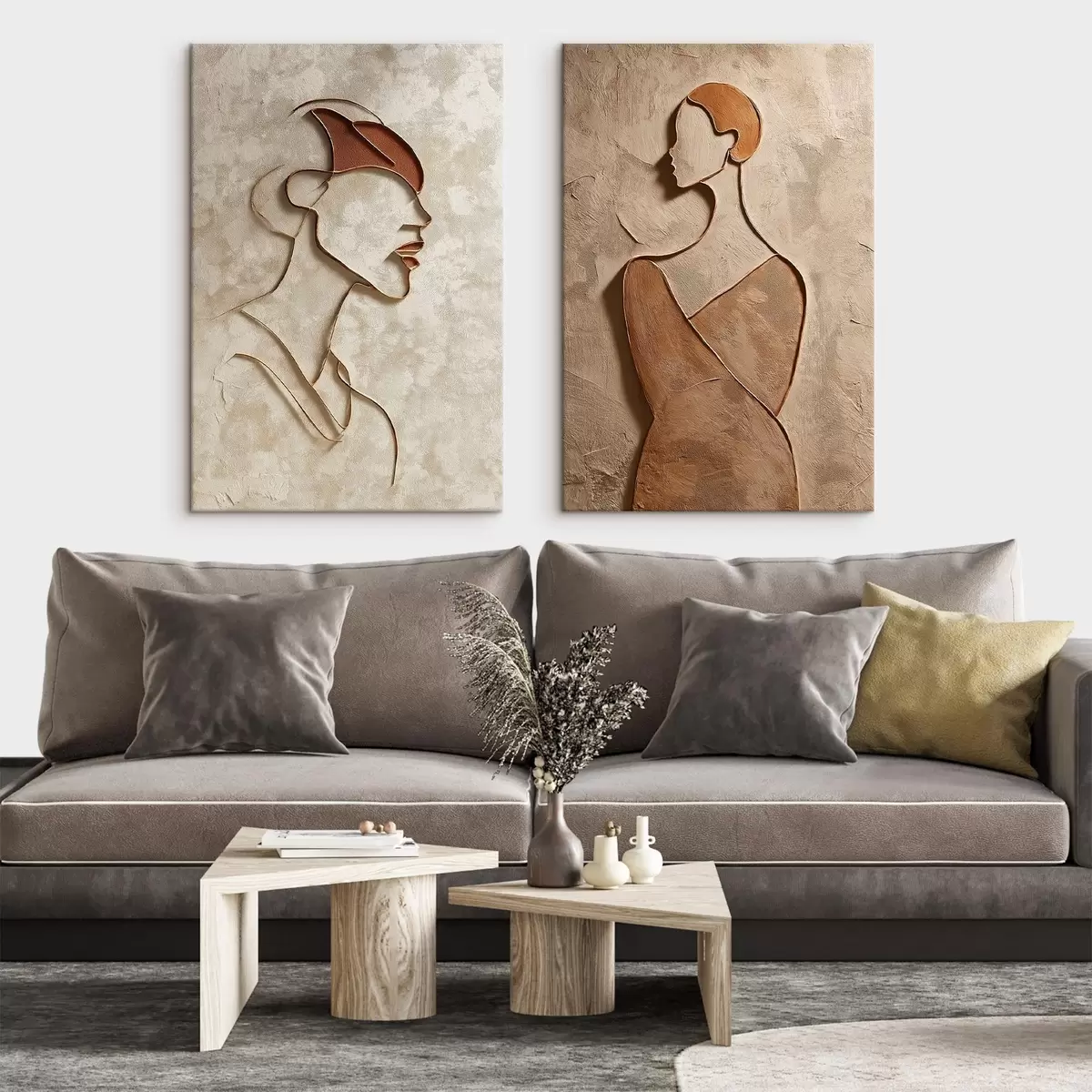 Schilderij Reliëf silhouetten van mensen in een minimalistische stijl Art. m00596