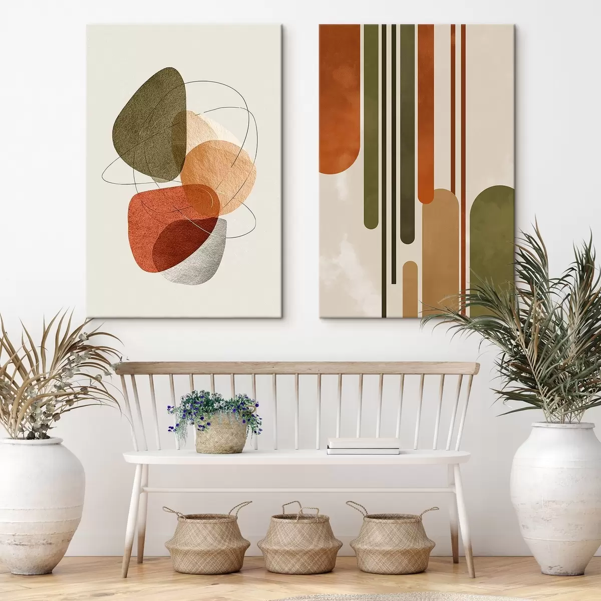 Je kunt het schilderij ophangen aan schroeven. Hiervoor leveren we bevestigingen bij onze foto's, zodat je de foto gemakkelijk kunt ophangen.