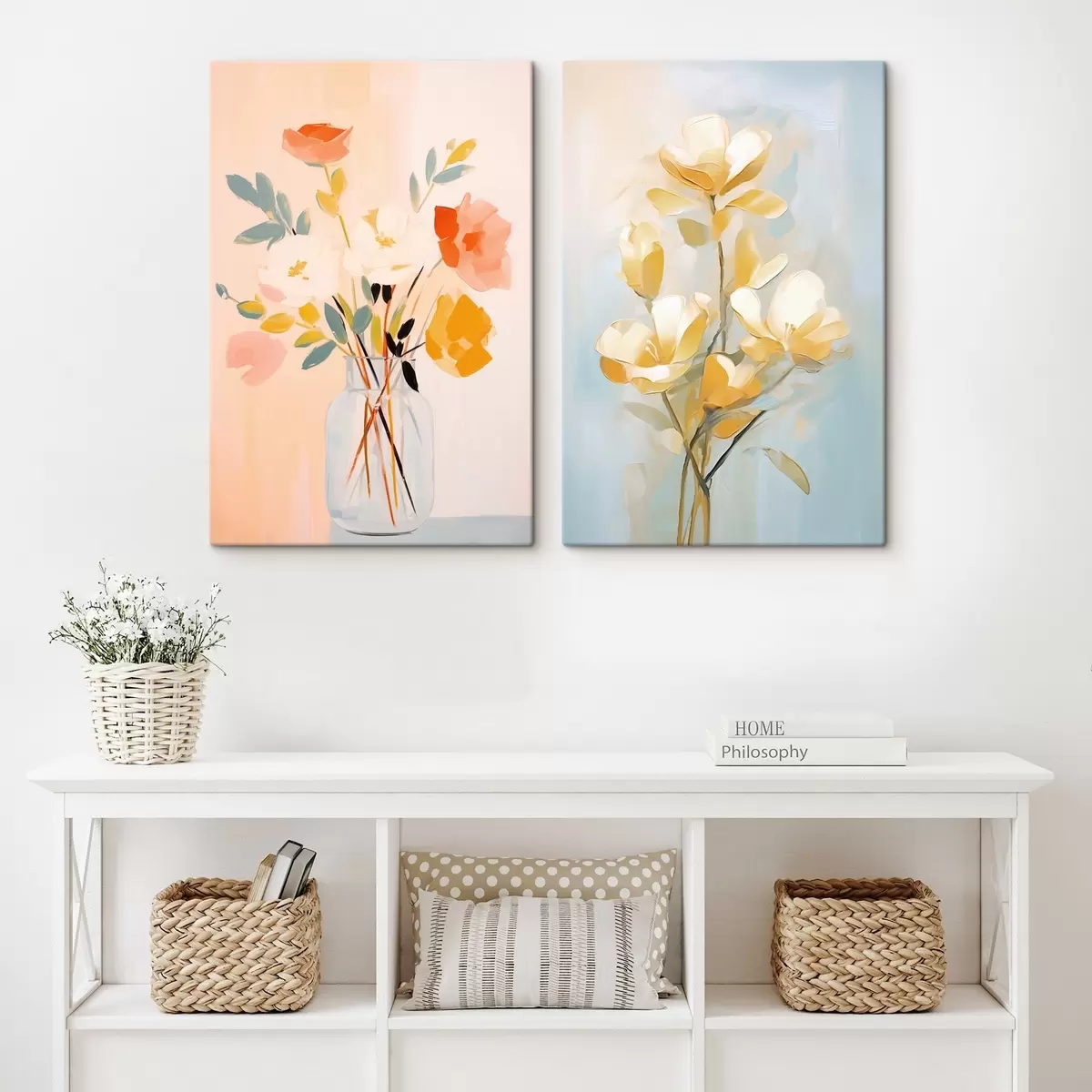 Schilderij Bloemen in een vaas: tekenen in de stijl van olieverfschilderijen Art. m00636