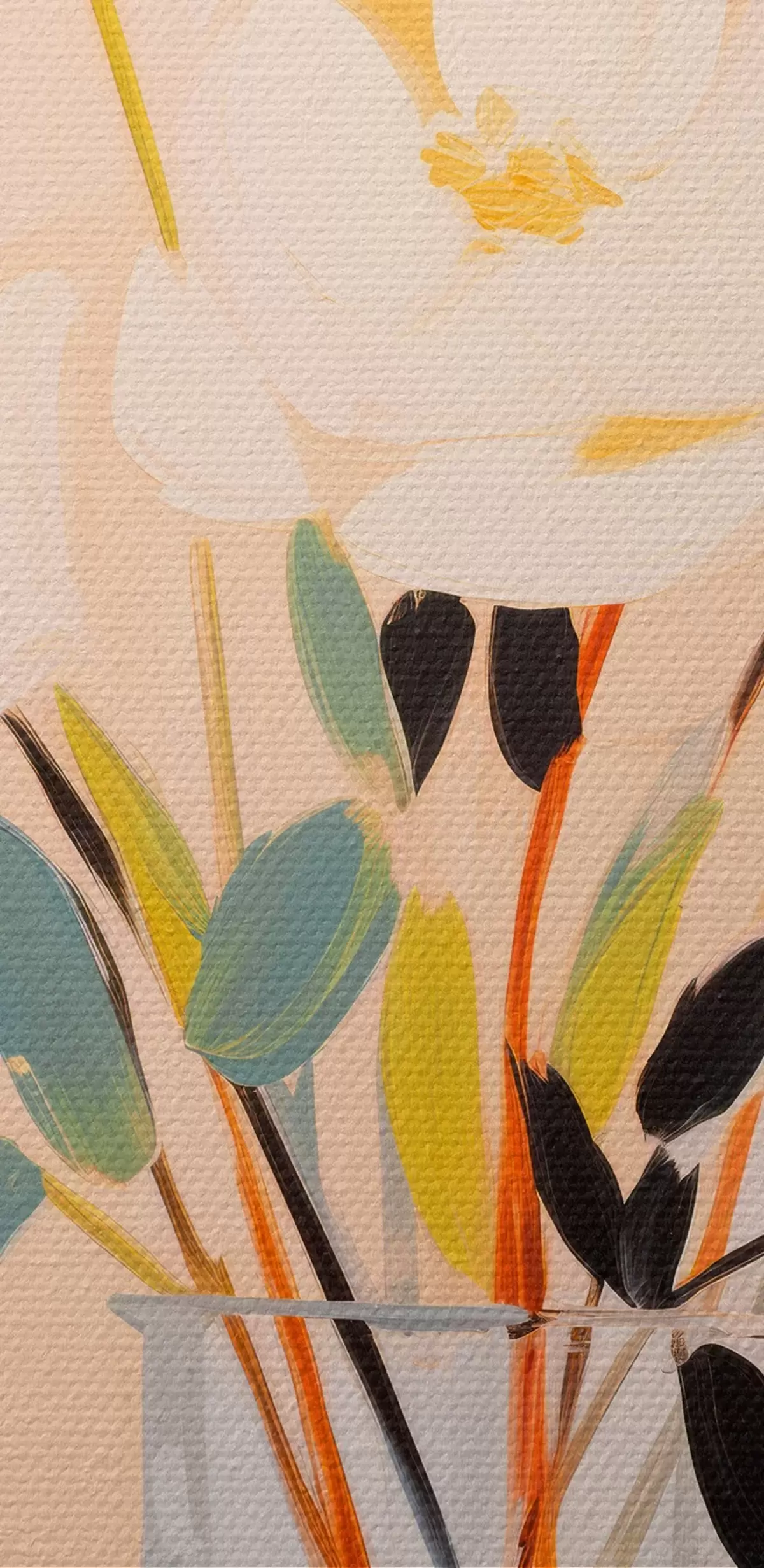 Het schilderij kan direct na ontvangst worden opgehangen. Het schilderij wordt opgespannen op een 2 cm breed houten spieraam.