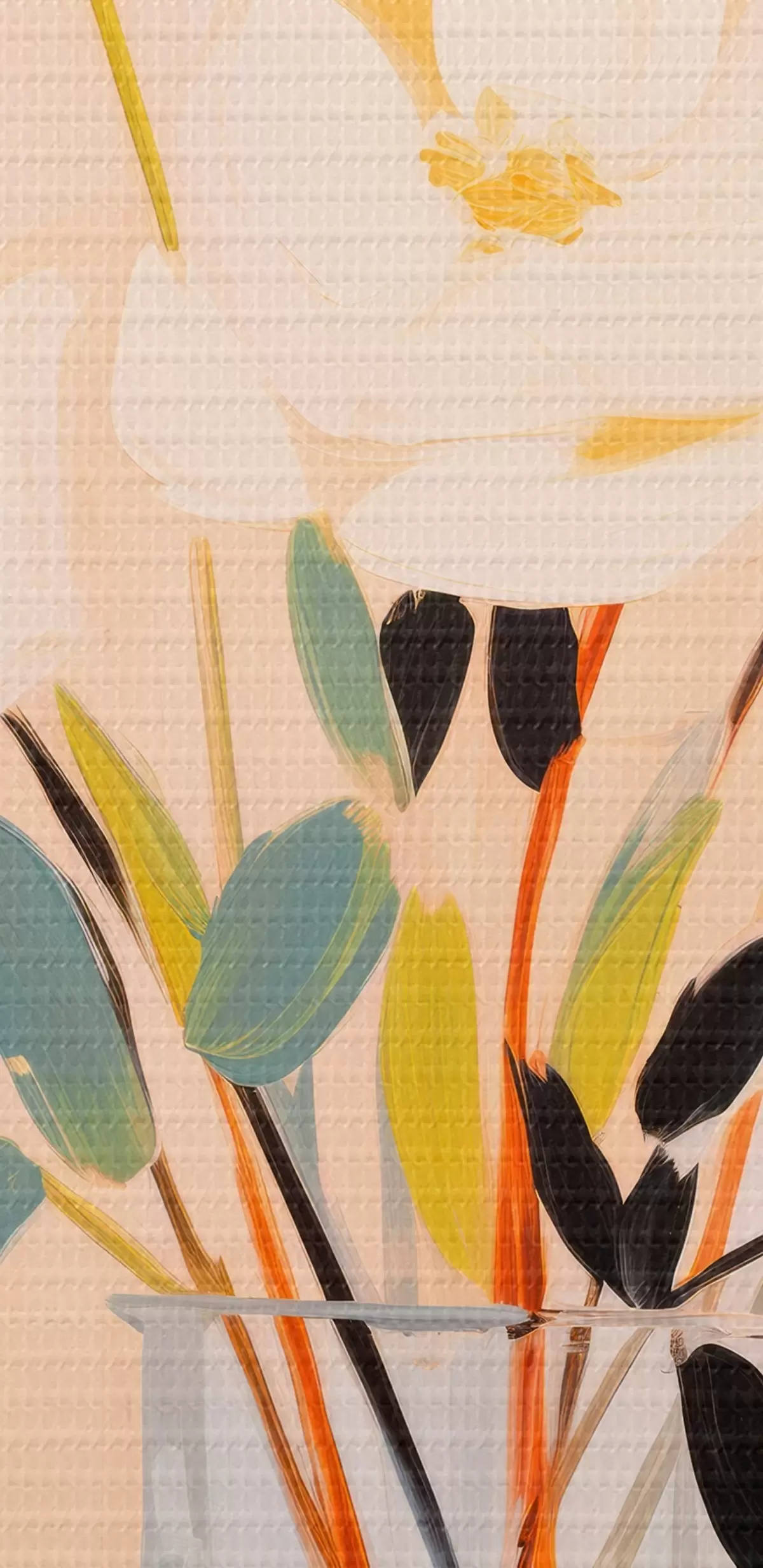 De fijne weving van draden op dit doek lijkt op het oppervlak van professionele schildersdoeken.