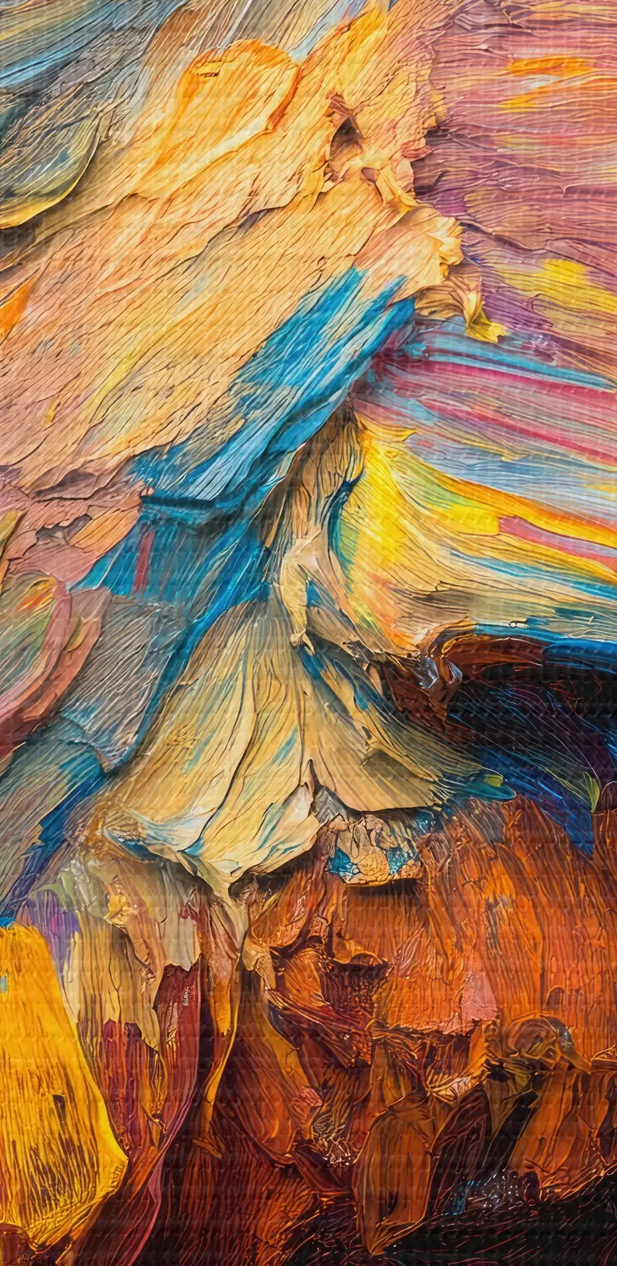 Het schilderij kan direct na ontvangst worden opgehangen. Het schilderij wordt opgespannen op een 2 cm breed houten spieraam.