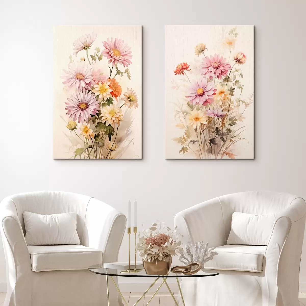 Schilderijen Een boeket kleurrijke bloemen, zachte aquarel stijl, op een lichte achtergrond, botanische illustratie m00649