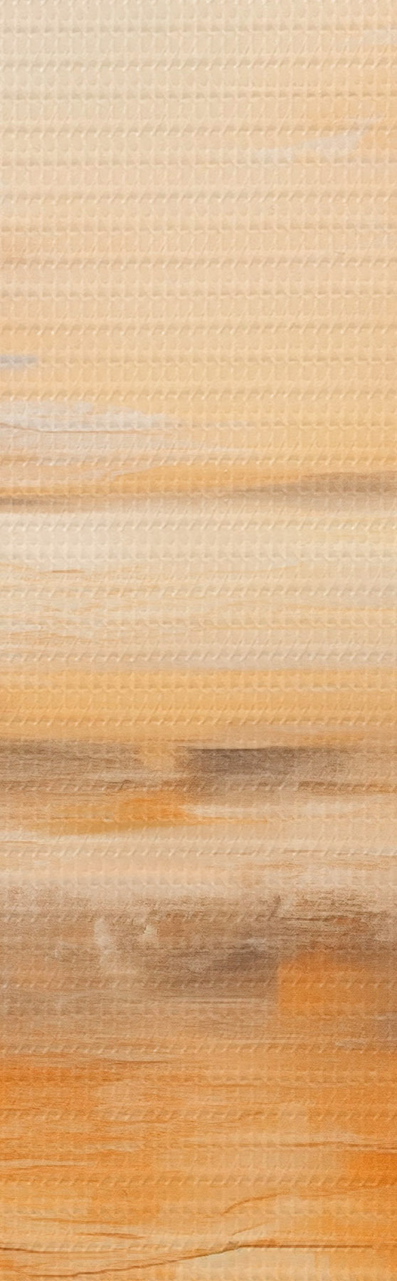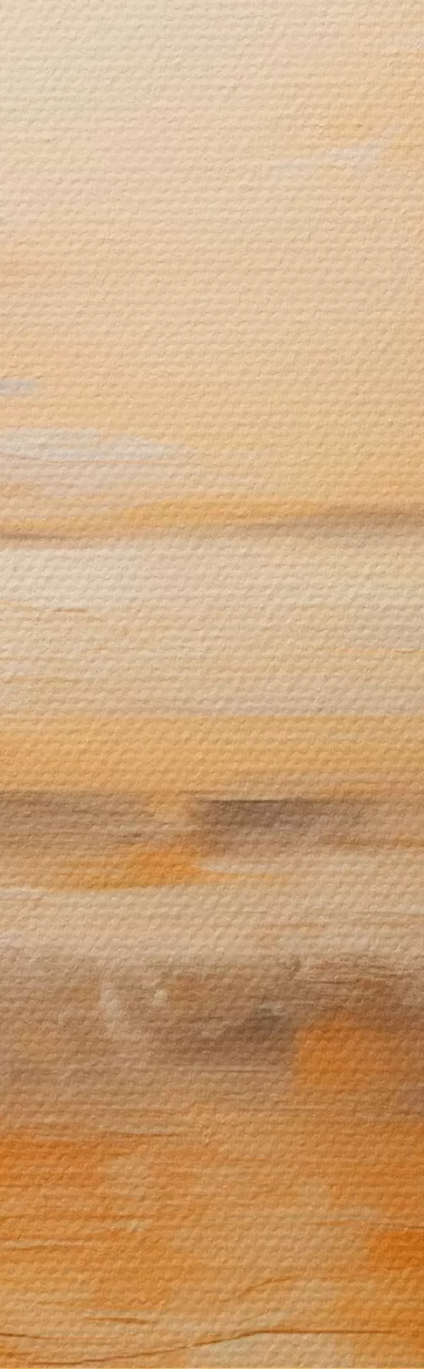 Schilderij Een abstract schilderij van een strandlandschap met een kalme oceaan, oranje zand en een bewolkte lucht met zon Art. m00653