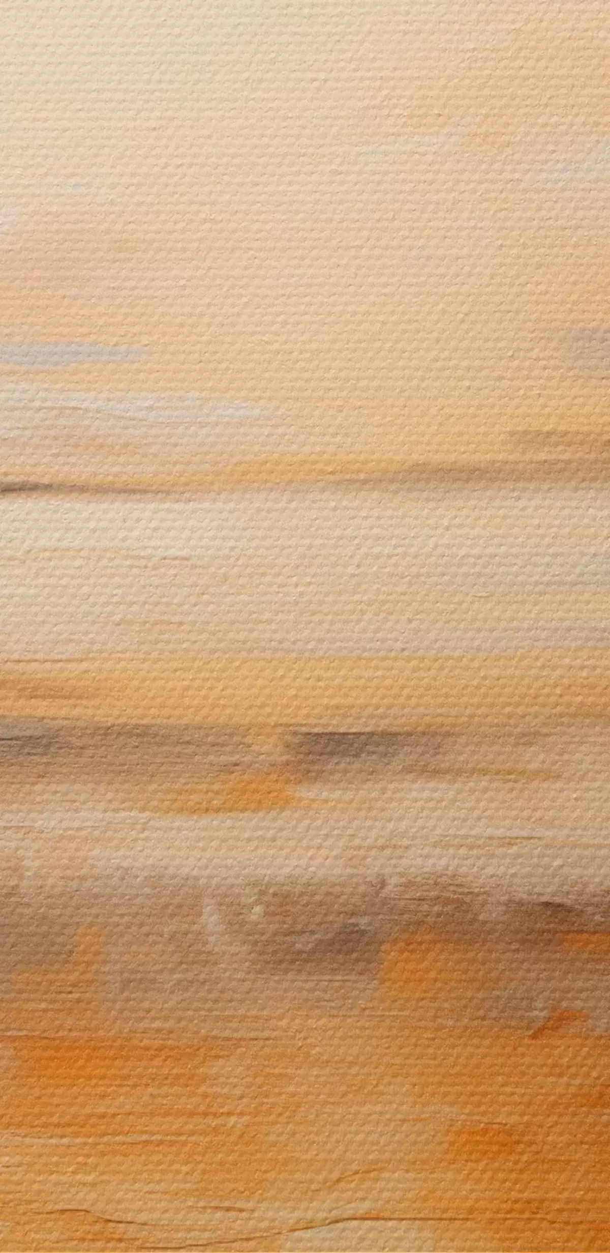 Schilderij Een abstract schilderij van een strandlandschap met een kalme oceaan, oranje zand en een bewolkte lucht met zon Art. m00653