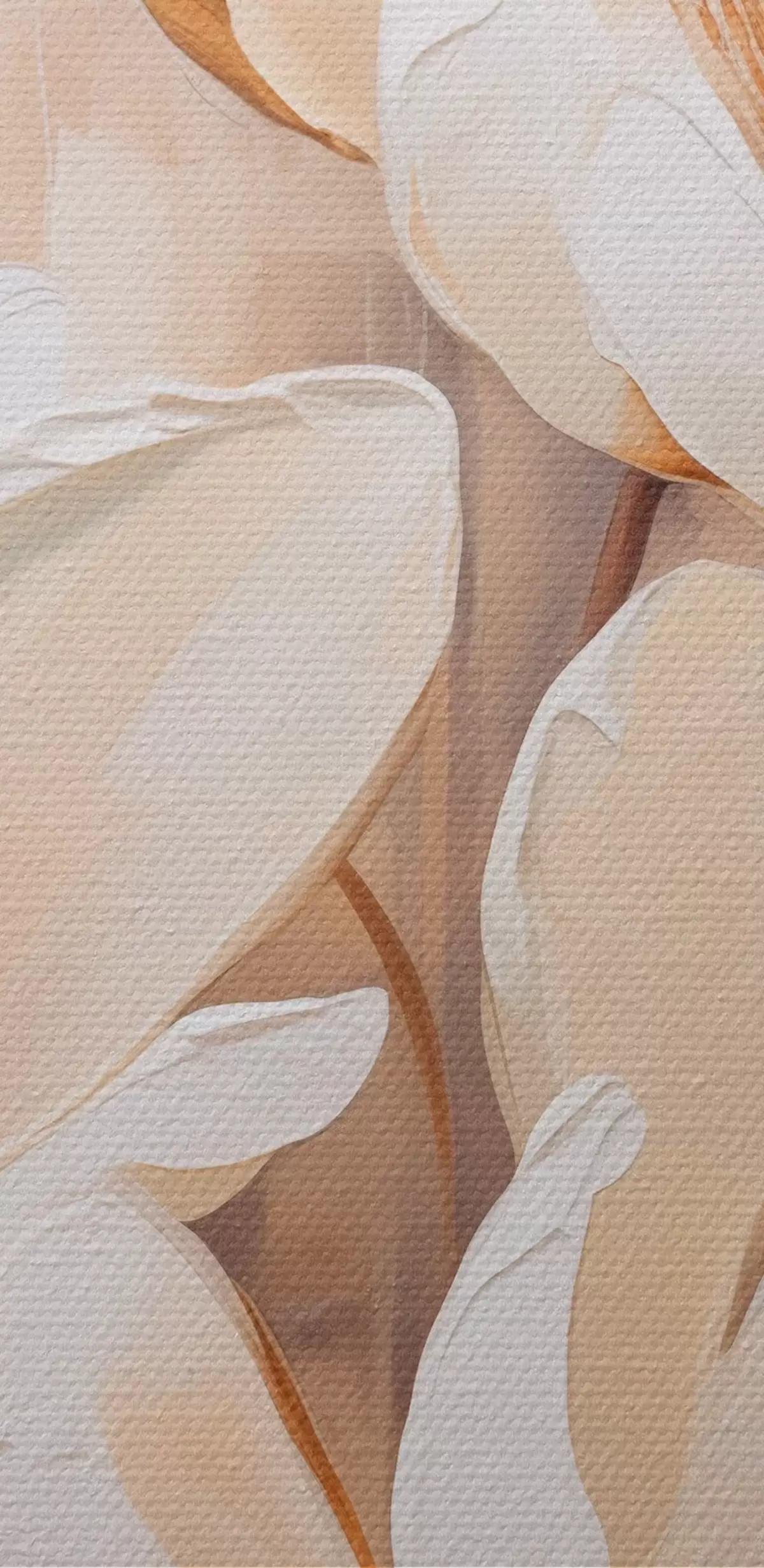 Schilderij Witte magnoliabloemen tegen een zachte, onscherpe achtergrond van beige en bruine tinten, schilderstijl Art. m00655
