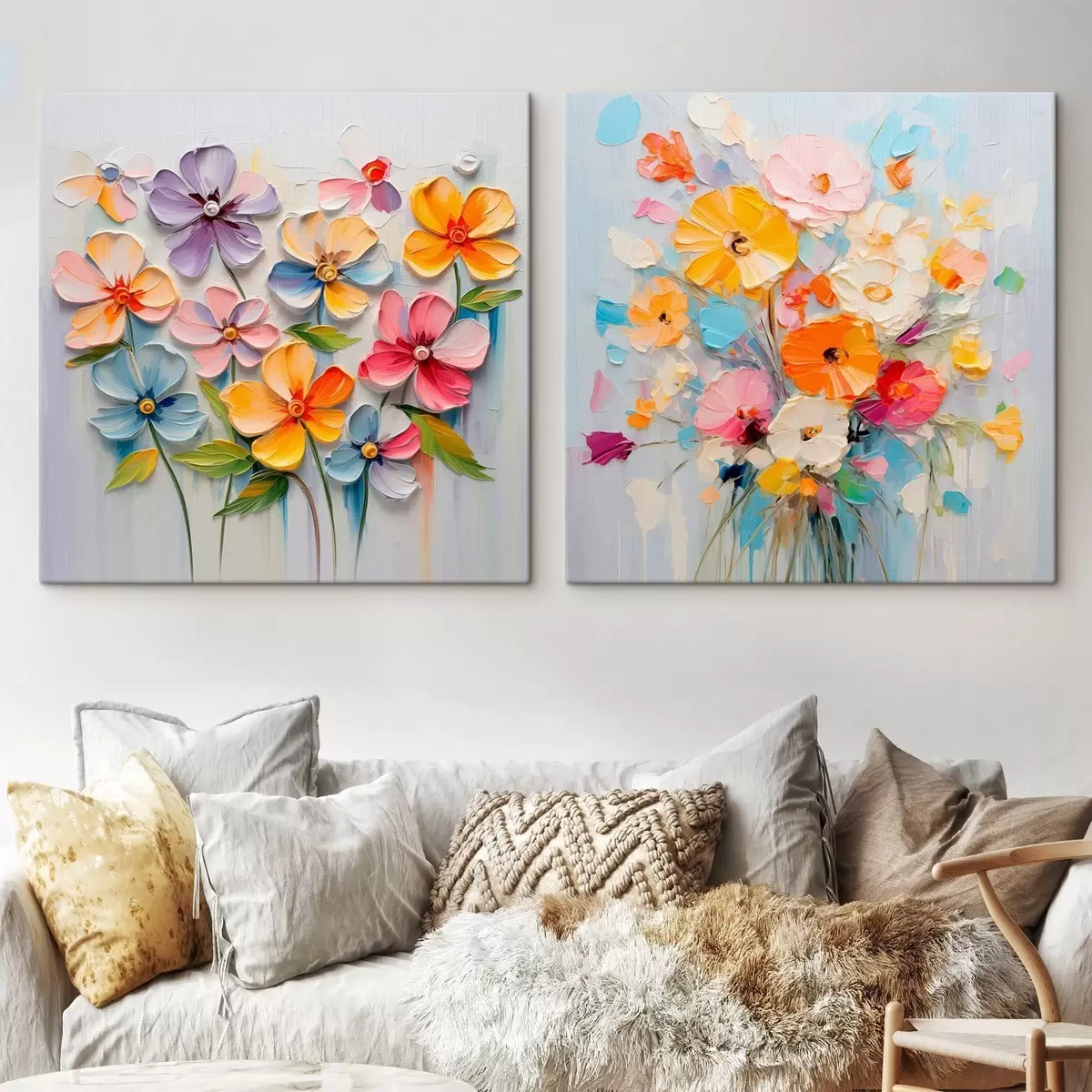 Schilderijen Abstracte composities van heldere bloemen gemaakt in impasto techniek m00662