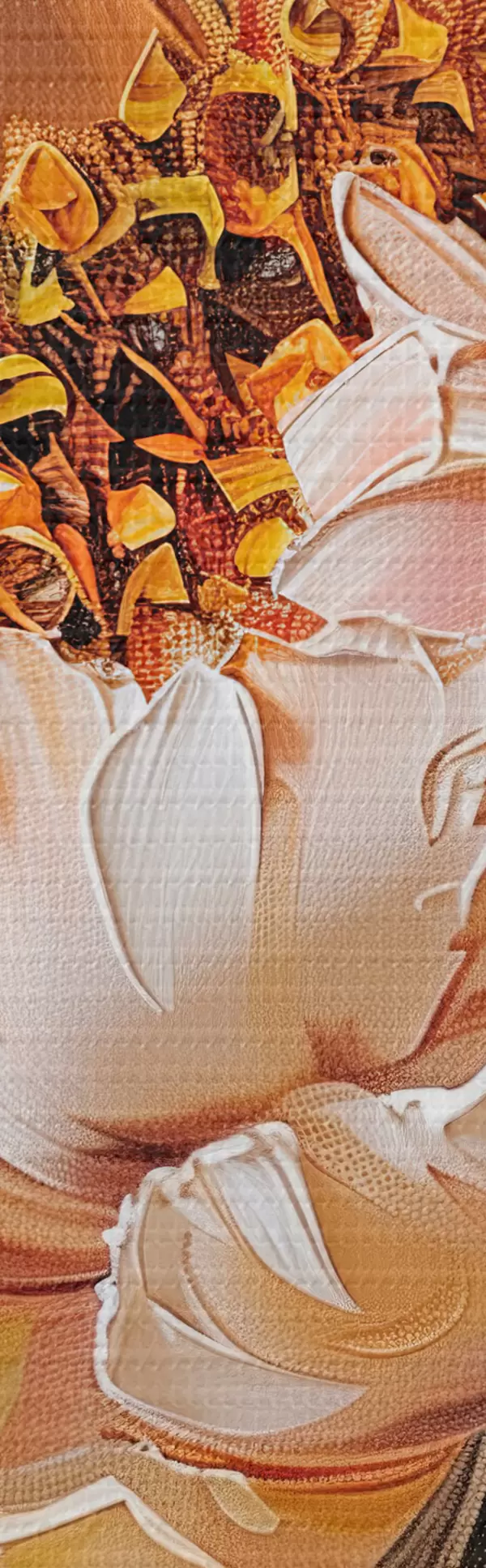 Er zijn drie soorten materiaal te bestellen: Economic Canvas - een dicht en duurzaam materiaal voor digitaal printen, identiek aan schildersdoek, waterdicht oppervlak, realistische weergave van details, materiaal met gemiddelde korrel. Premium Canvas - de textuur lijkt op die van schildersdoek (verweven kleine draden). Zachte, gedetailleerde reproductie van de afbeelding op een mat oppervlak. Eco-Premium - hoogwaardige 100% katoenen stof. Dankzij de natuurlijke katoenvezels is het materiaal duurzaam en slijtvast. Uitstekende kleurweergave en detail.