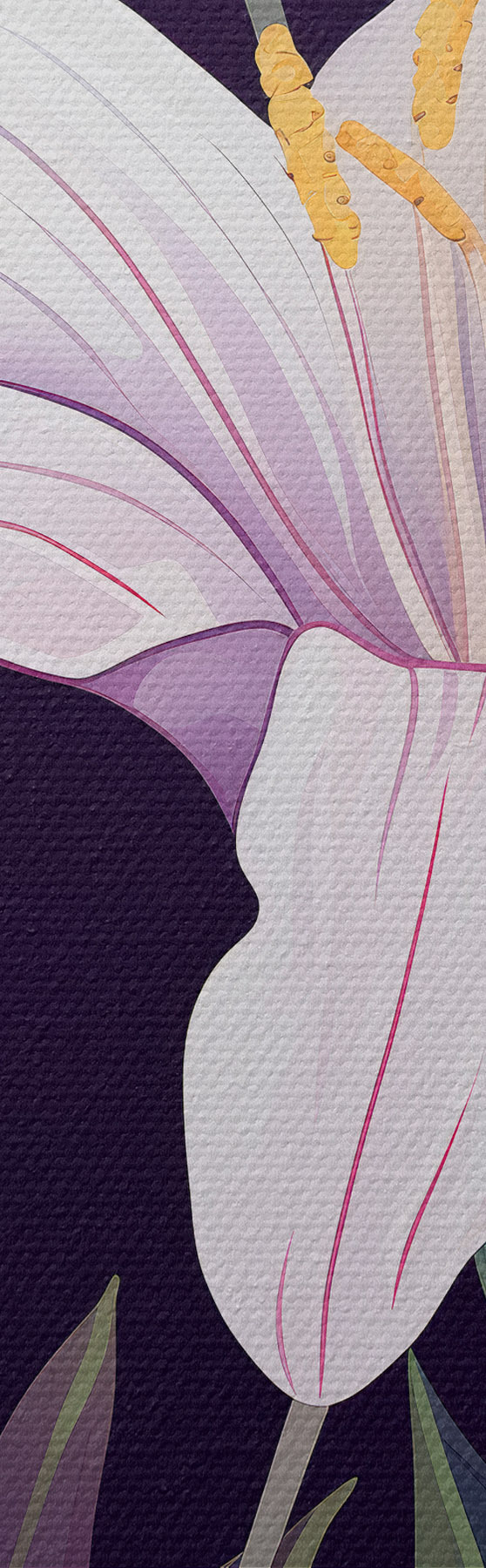 Schilderij Delicate roze lelies met groene bladeren op lichte en donkere achtergrond Art. m00689