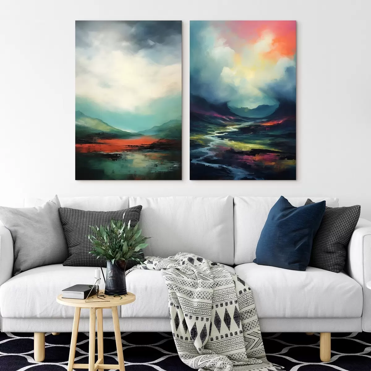Schilderij Abstract landschap met wolken in turquoise en rode tinten Art. m00691