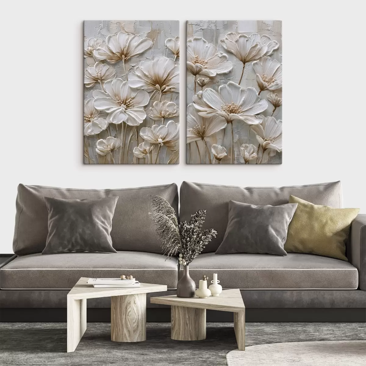 Schilderijen crèmekleurige bloemen in imitatie-impastostijl m00701