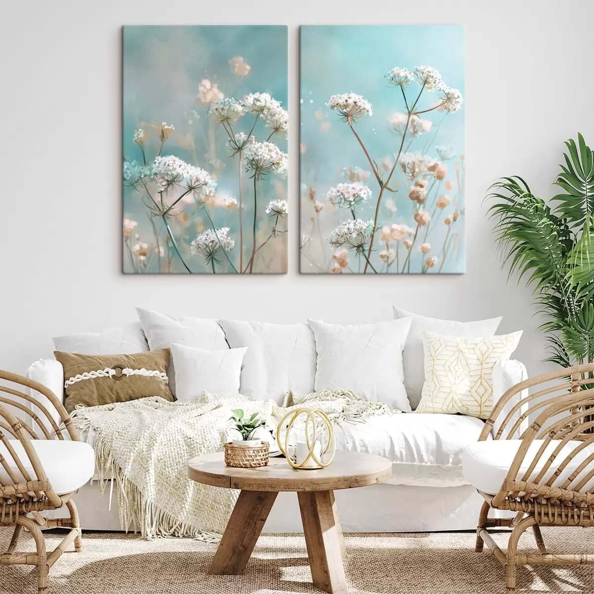 Schilderij Queen Anne's Lace-bloemen in aquarelstijl op een blauwe achtergrond Art. m00705