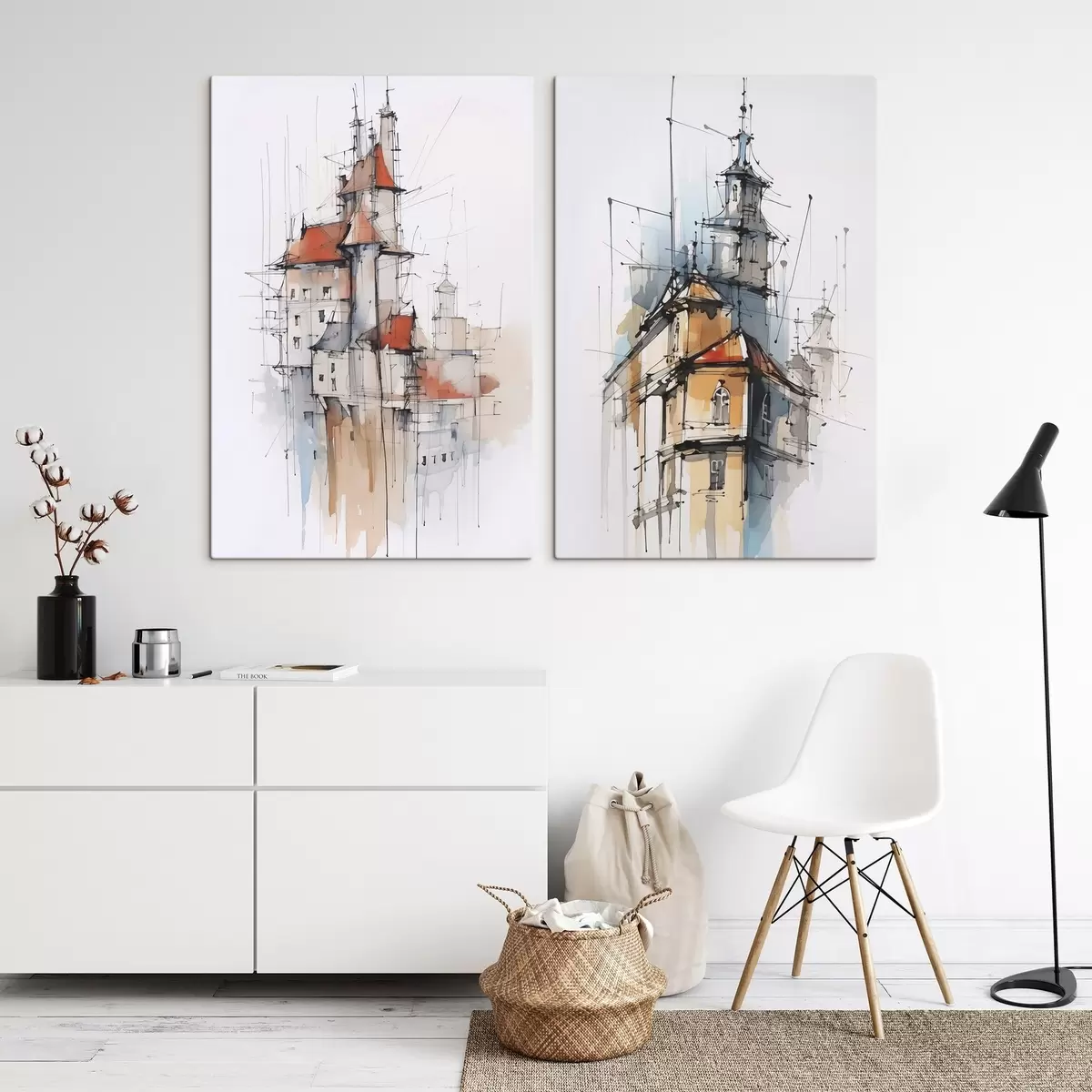 Schilderij Huizen imitatie schets en aquarel Art. m00725
